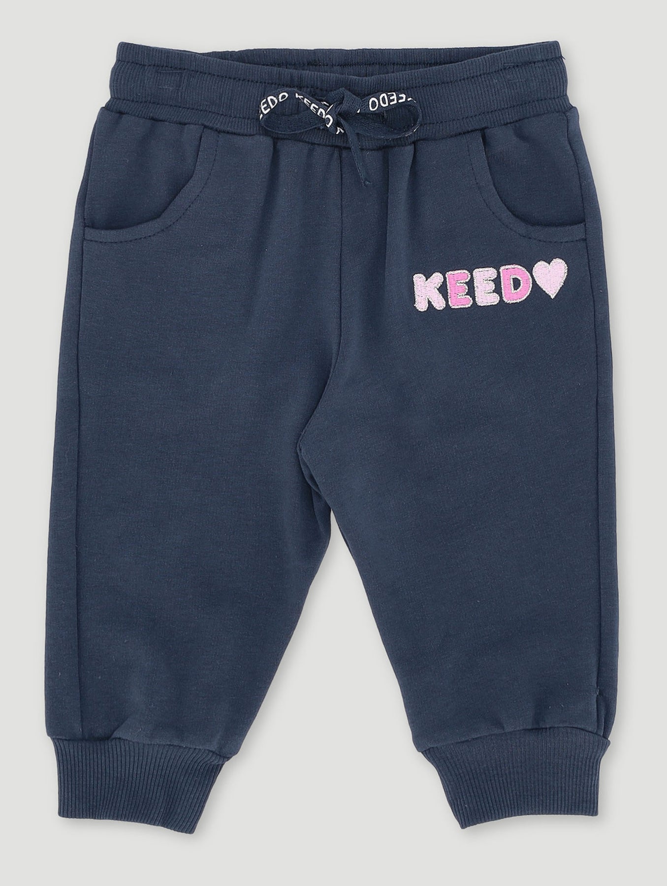 Keedo Baby Girls Navy Heart Logo Embroidered Fleece Jogger