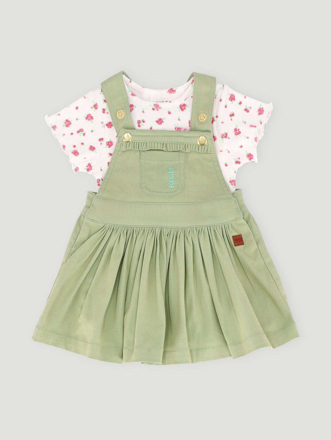 Keedo Baby Girls Denim Pinni & Printed Tee - Sage