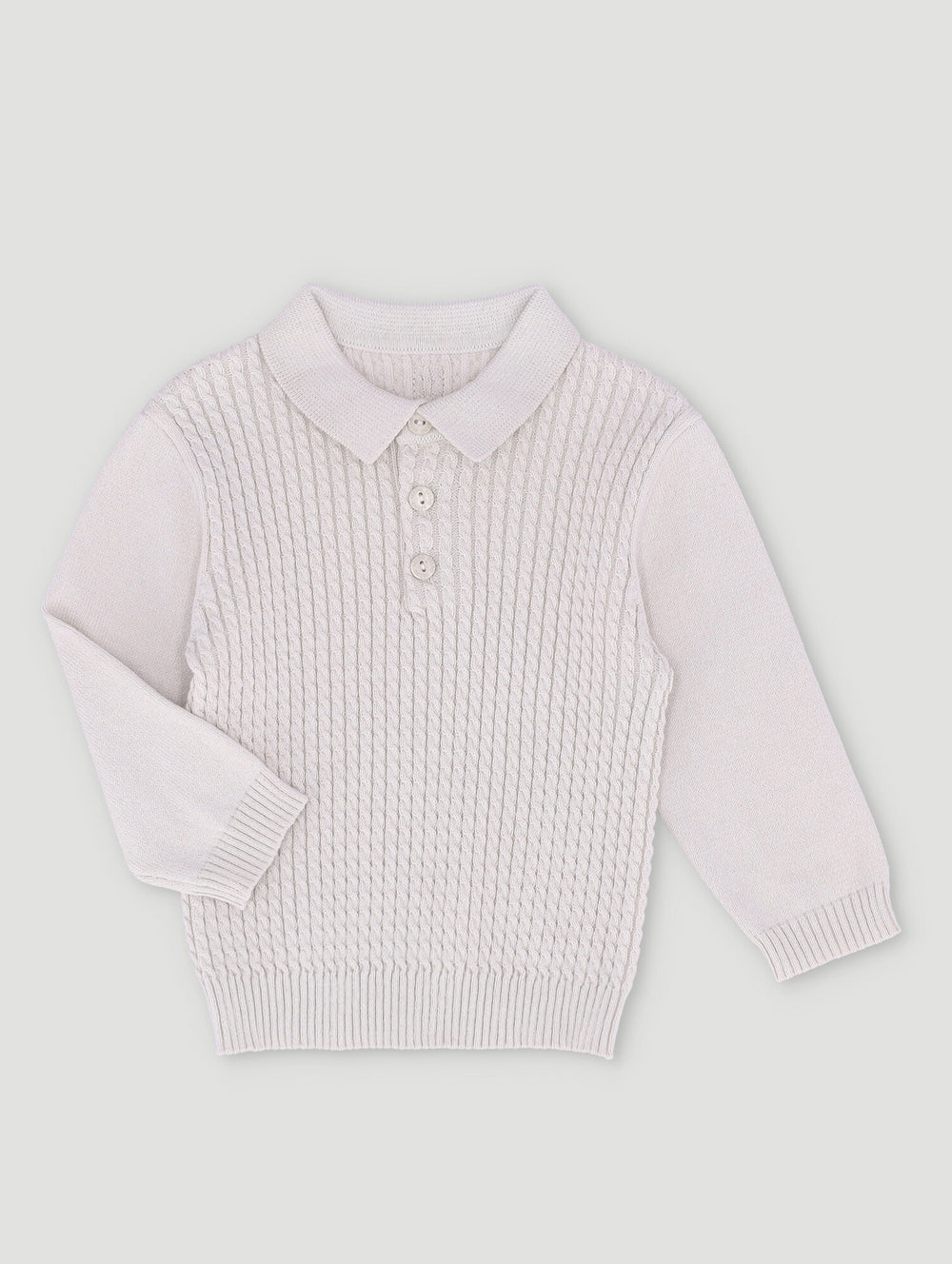 Keedo Boys Cable Knit Smart Polo Top - Grey