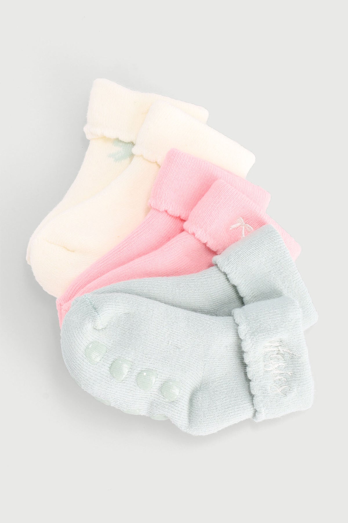 Baby Girls 3 Pack Embroidered Towelling Socks - Sage