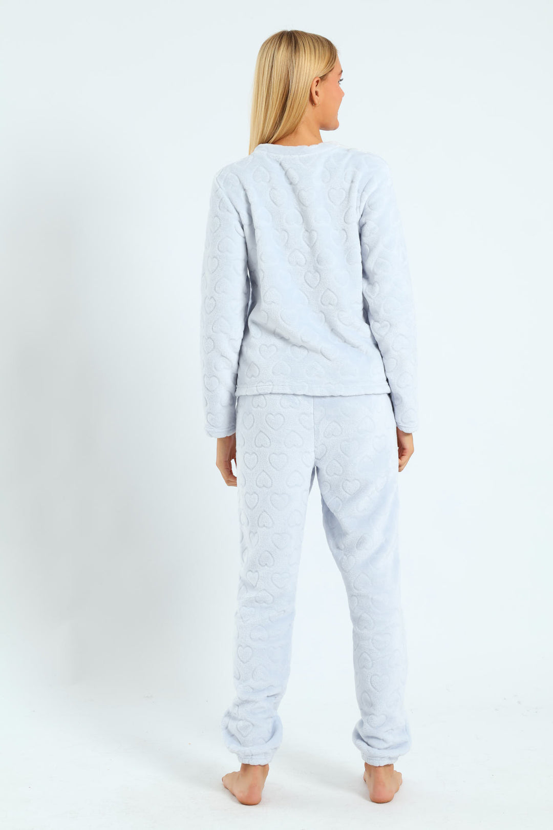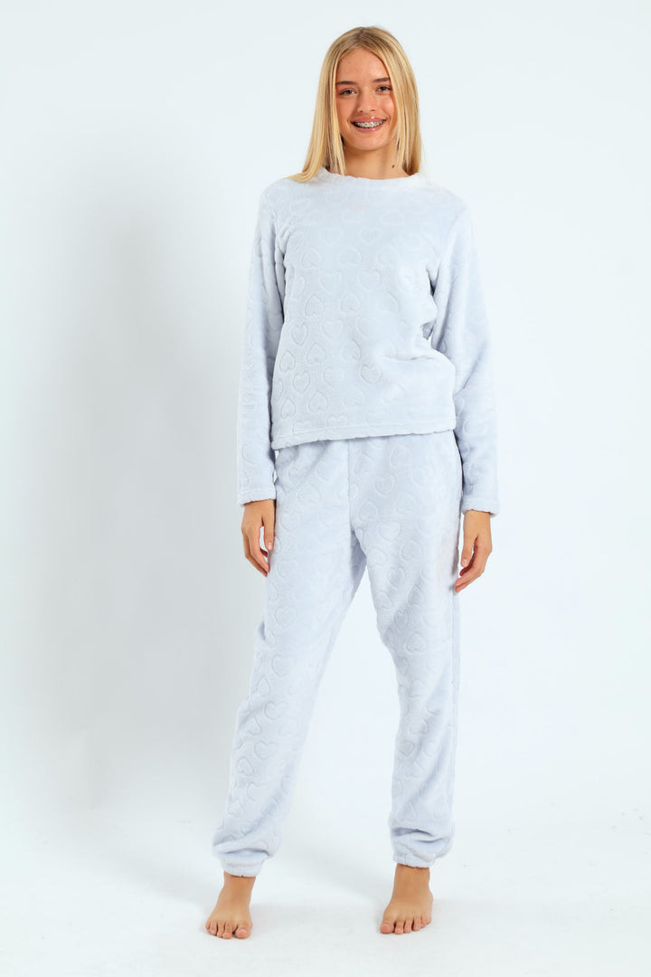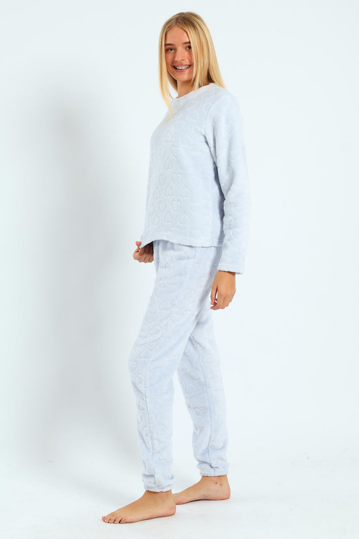 Girls Embossed Heart Coral Fleece Sleep Set - Blue