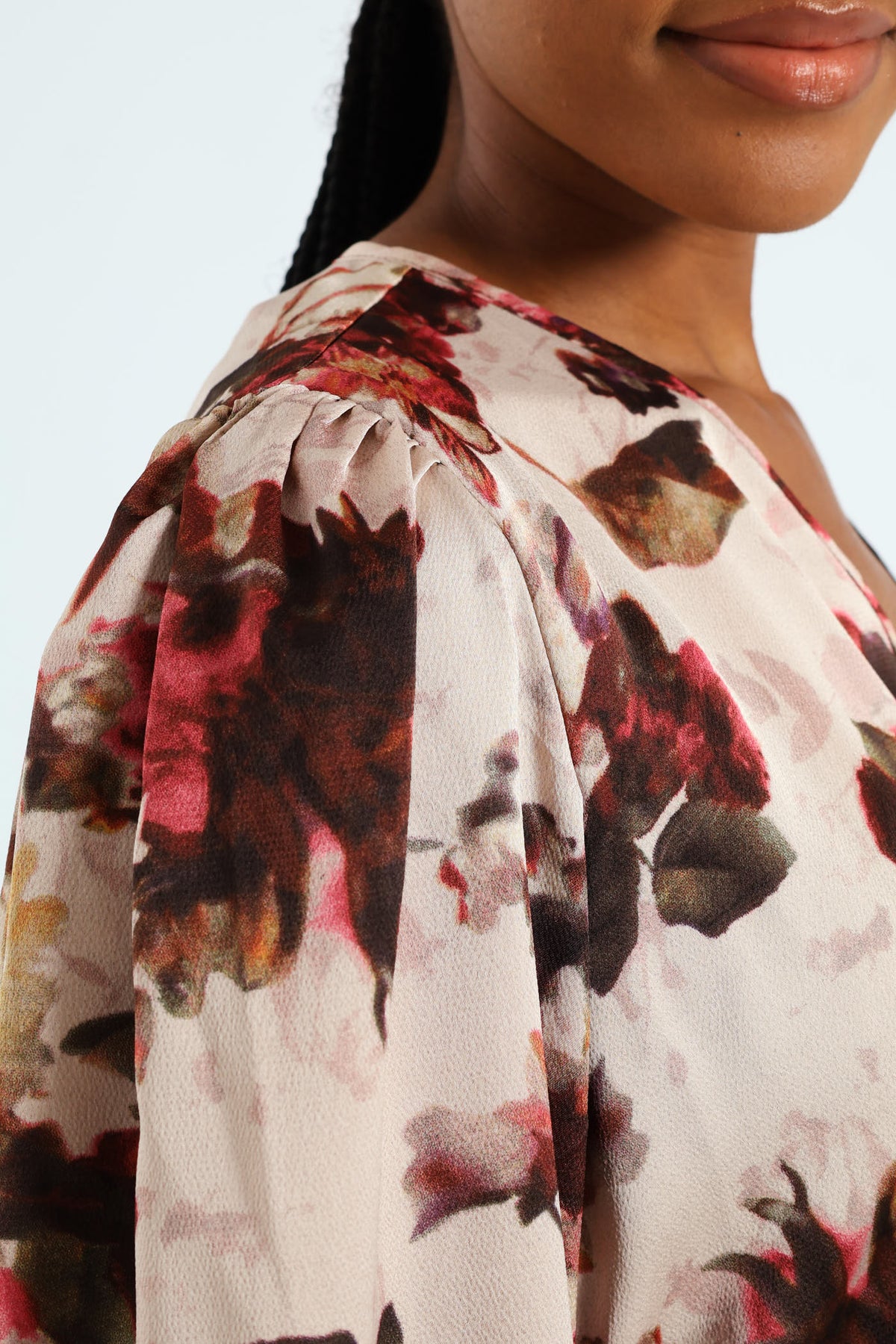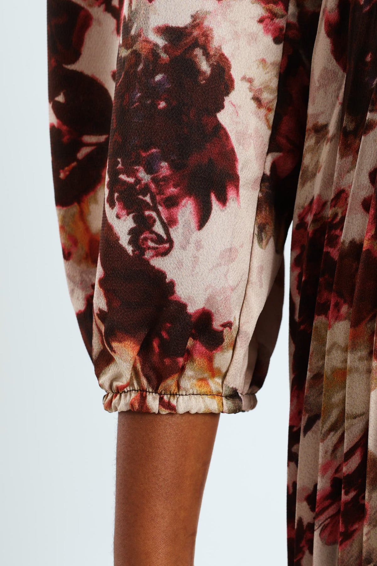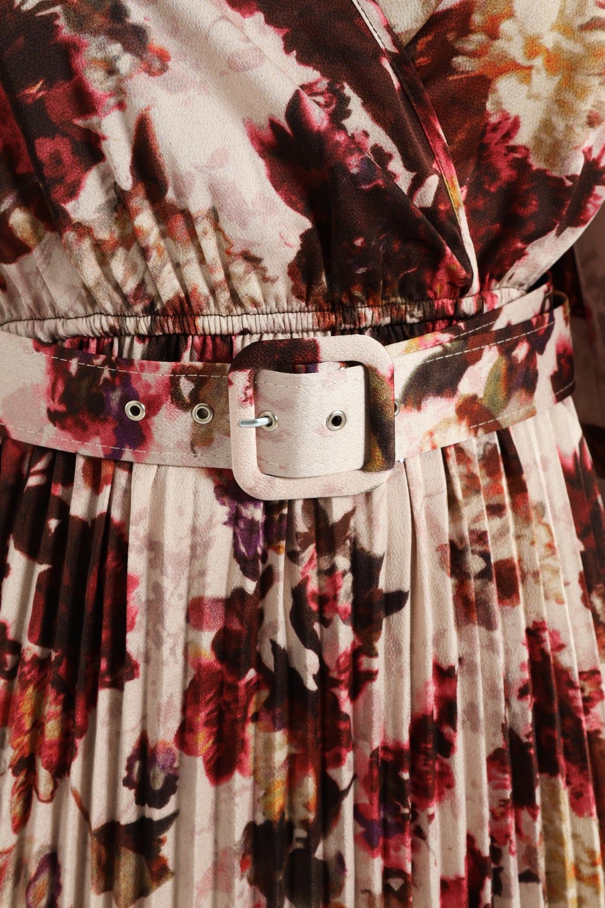 Pleated Satin Belted Wrap Maxi Dress - Cream