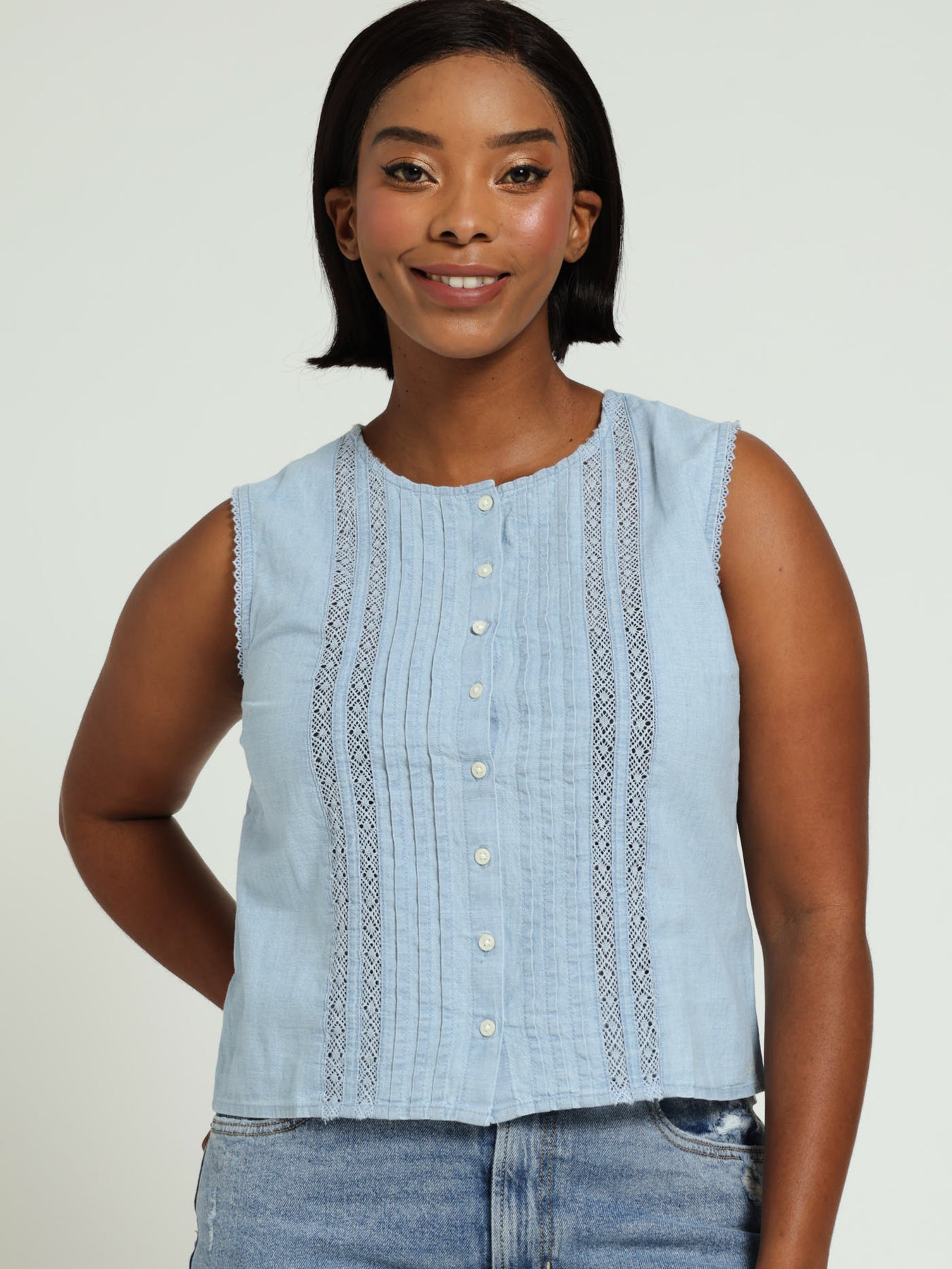 Lorelai Seamless Button Down Top - Blue