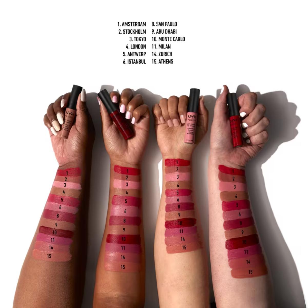 Envelop your lips in this high-pigmented, plush matte formula in colors inspired by cities of the world. Enjoy matte lips that are always soft, never dry, in rosy hues of Copenhagen, go nude in Abu Dhabi and blush all over in Stockholm! This lip cream is a matte lipstick lover's dream - light on the lips and heavy on the pigmentation!