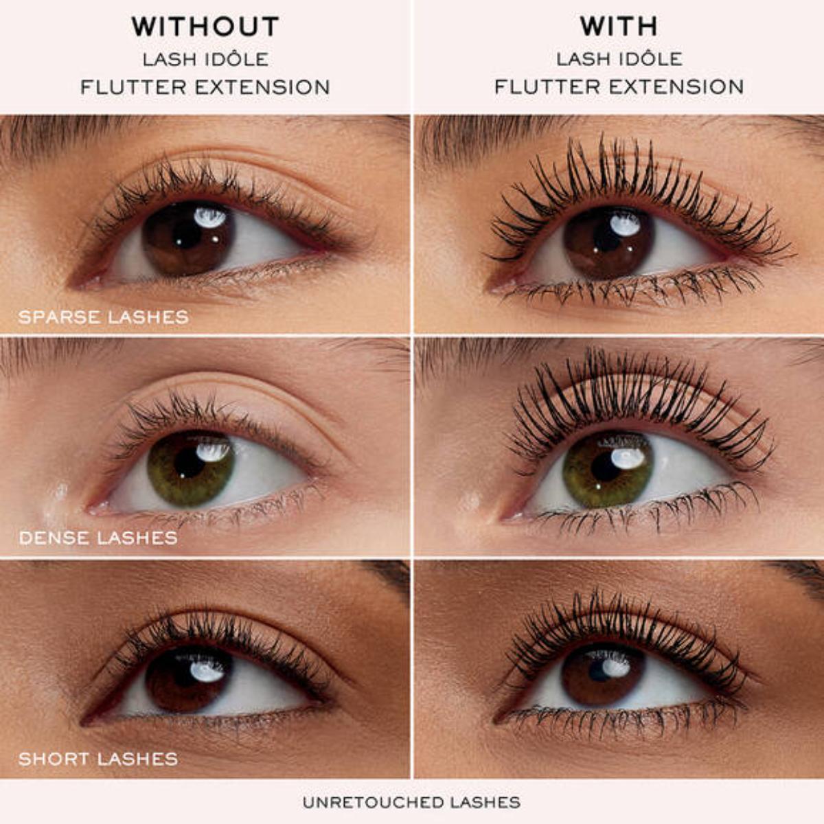 Lash Idôle Flutter Extension Mascara gives your lashes infinite length for an up to 24H lash extension look. 96% of lash extension users would recommend this mascara*. Extend your lashes into their length era.
