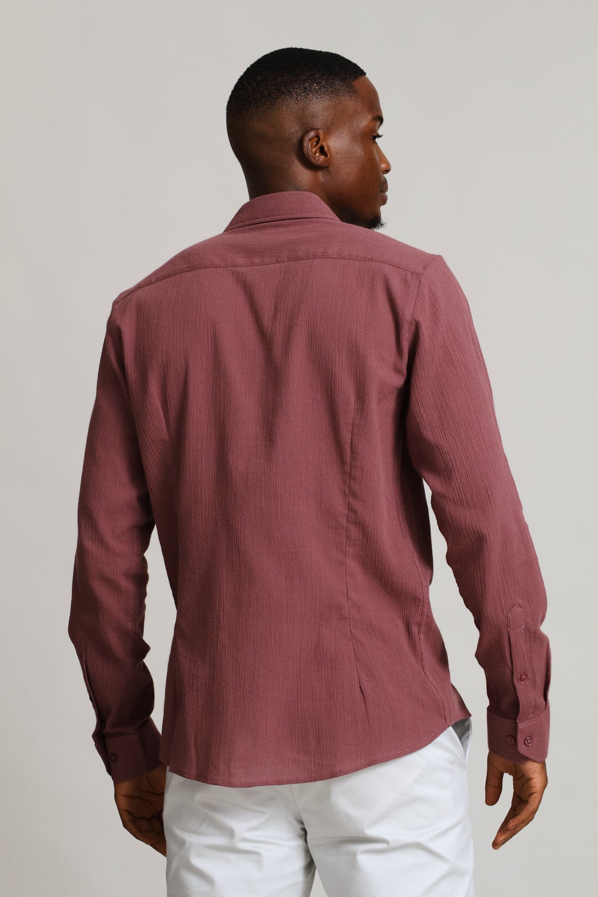 Long Sleeve Crinkle Look Textured Shirt - Rust/Cream