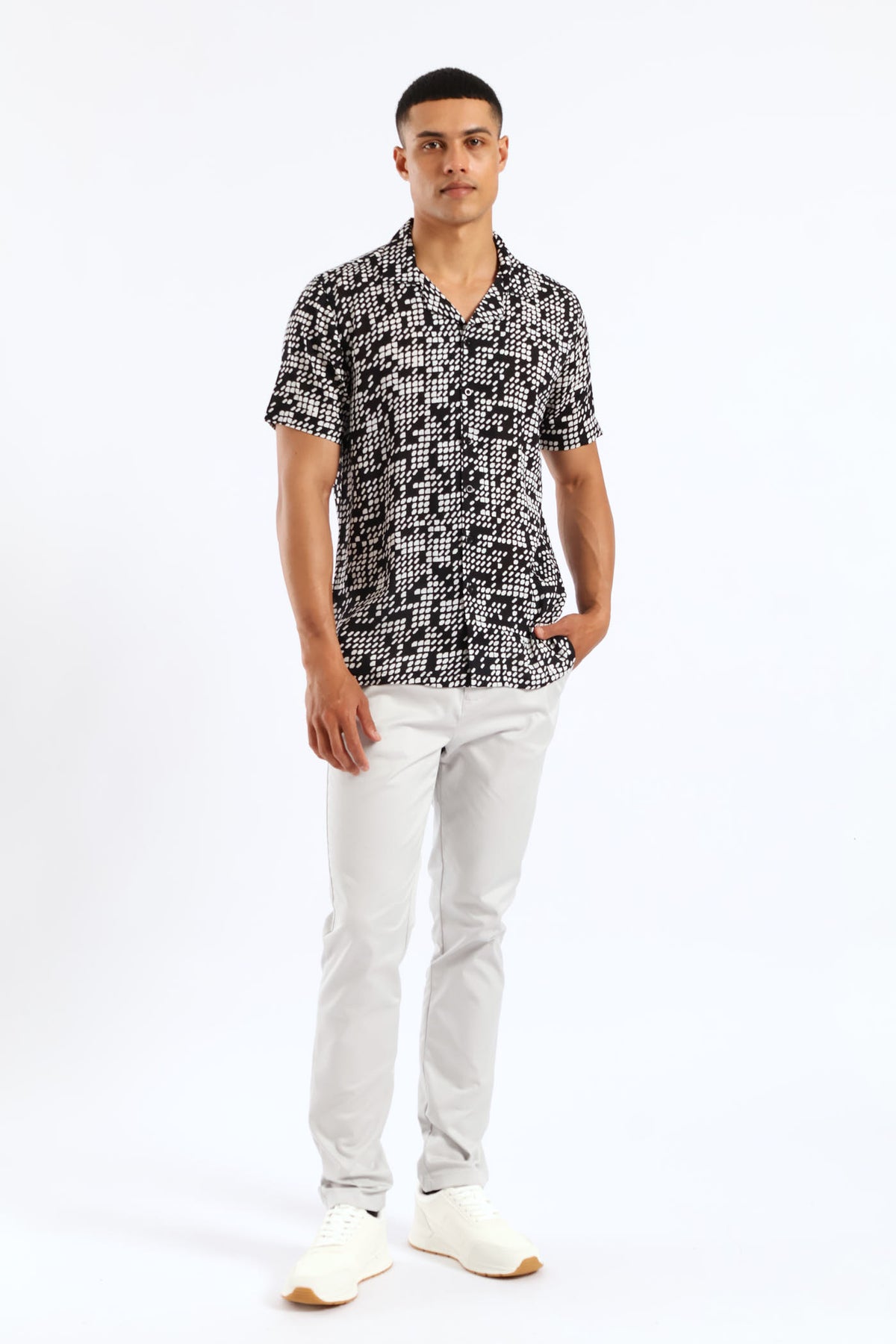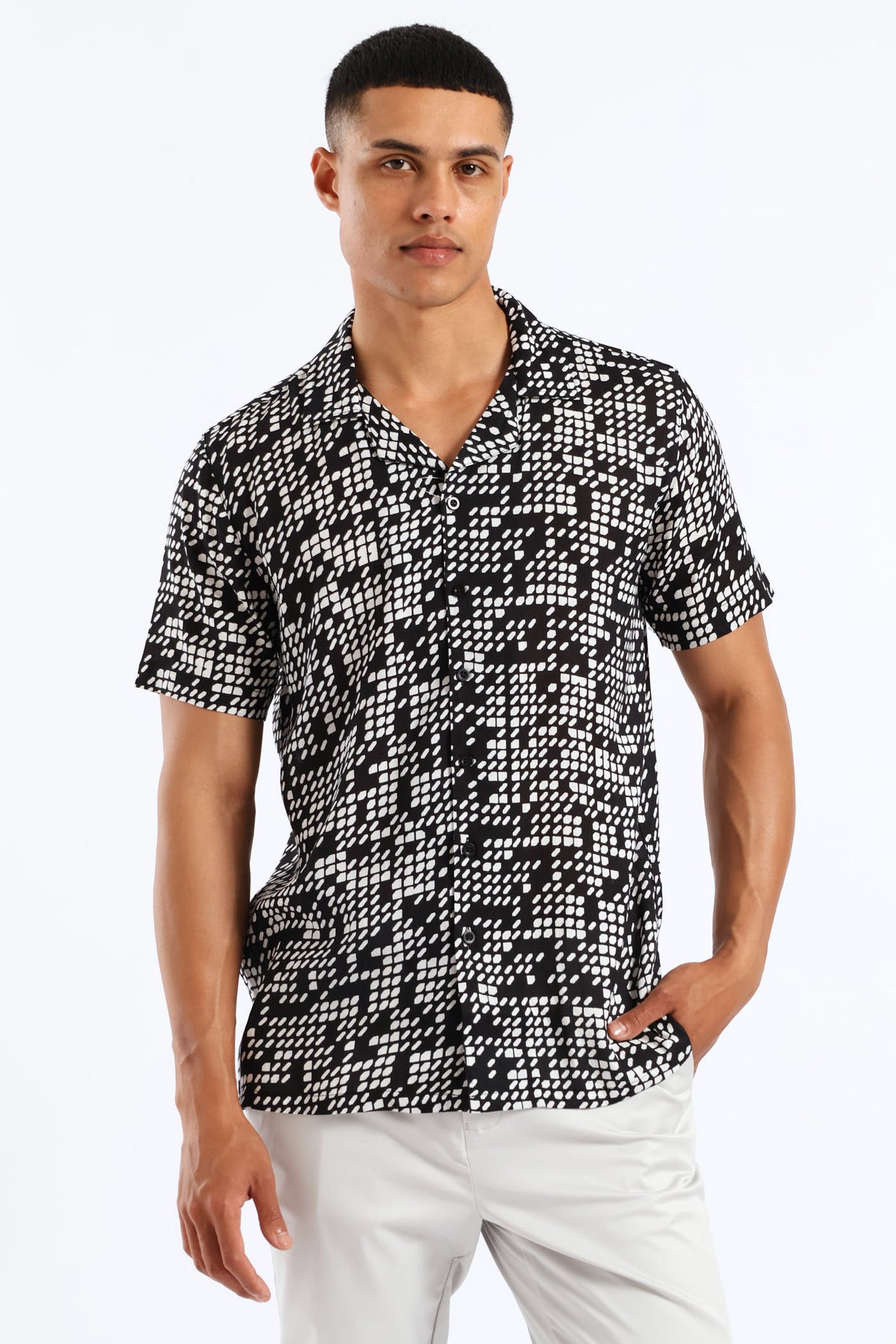 Viscose Geo Print Shirt - Black/White