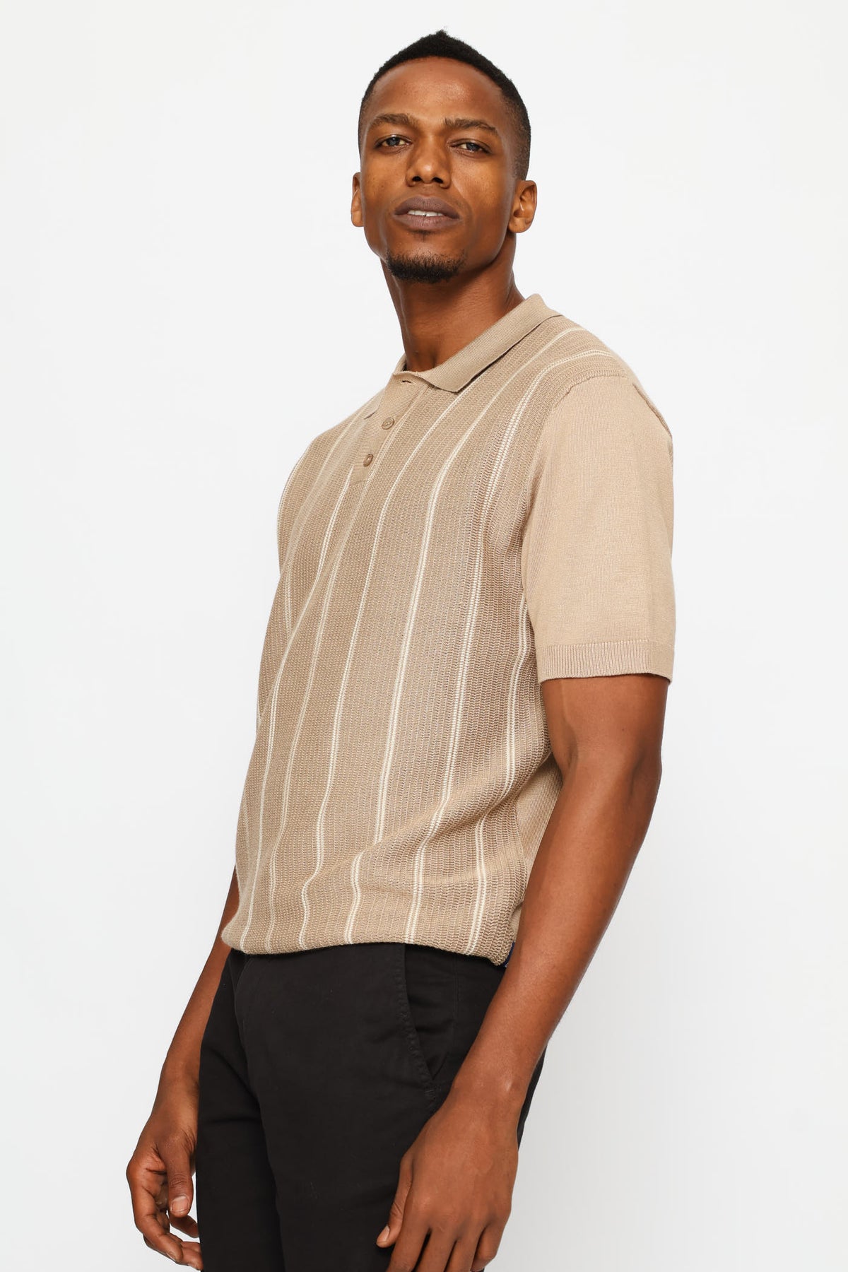 Thin Stripe Fine Gauge Golfer - Taupe