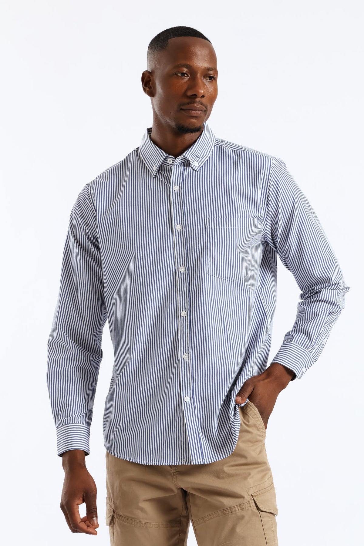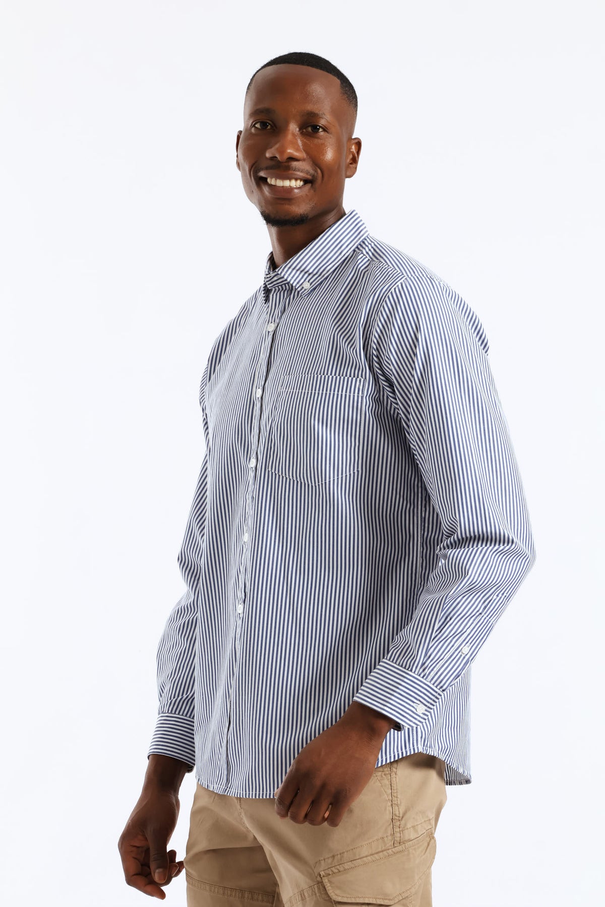 Long Sleeve Stripe Button Down Shirt - White/Blue