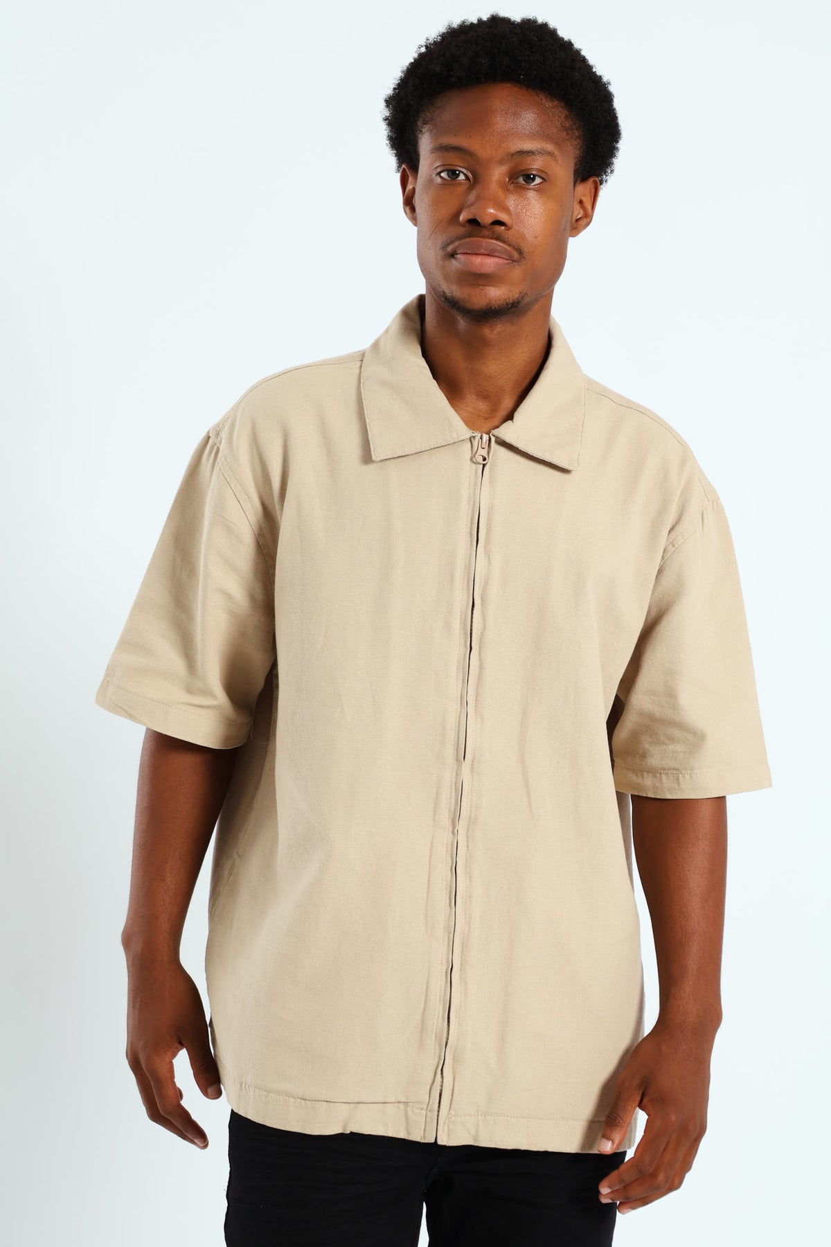 Zip Through Front & Back Shirt - Stone