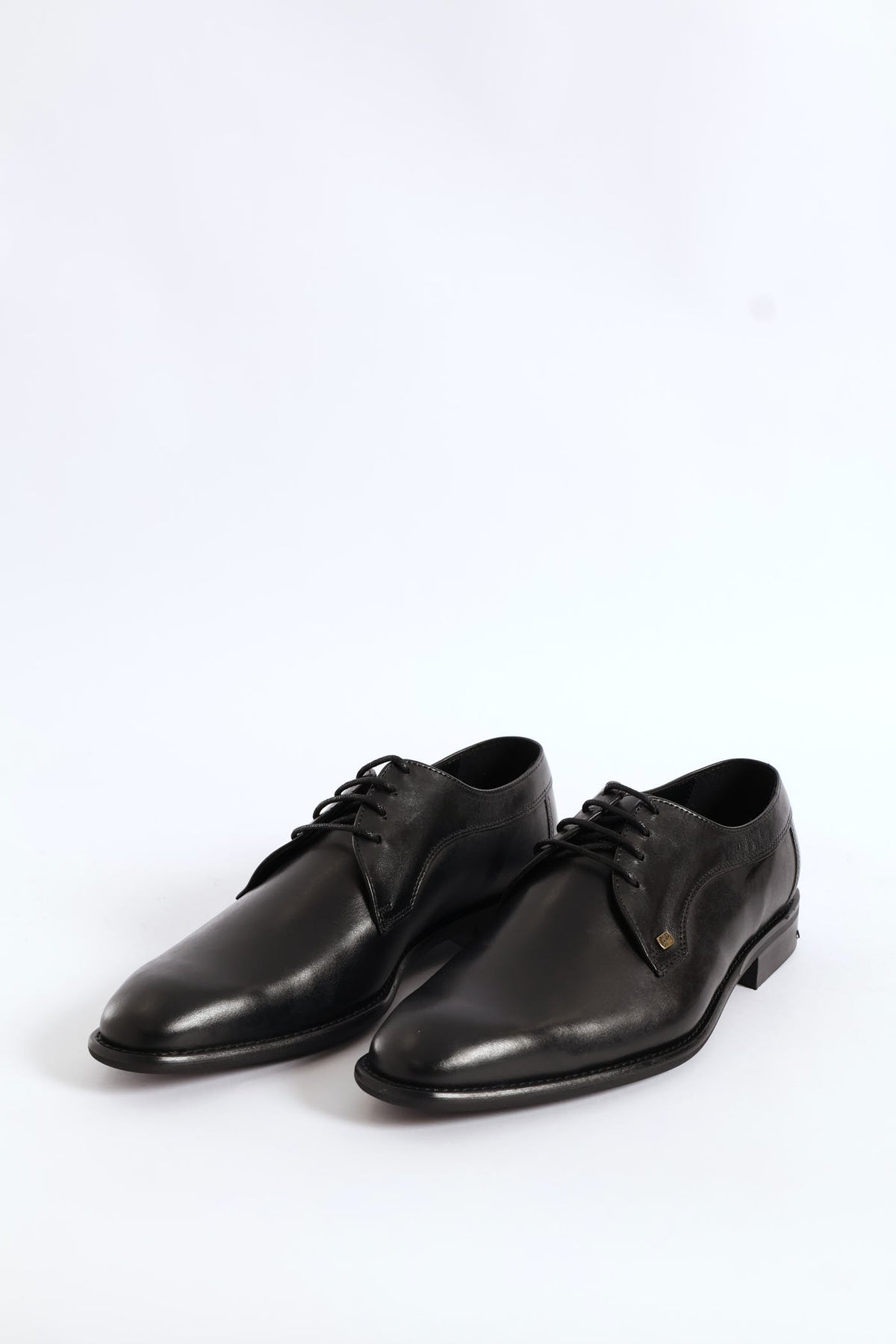 Leather Plain Toe Derby Shoe - Black