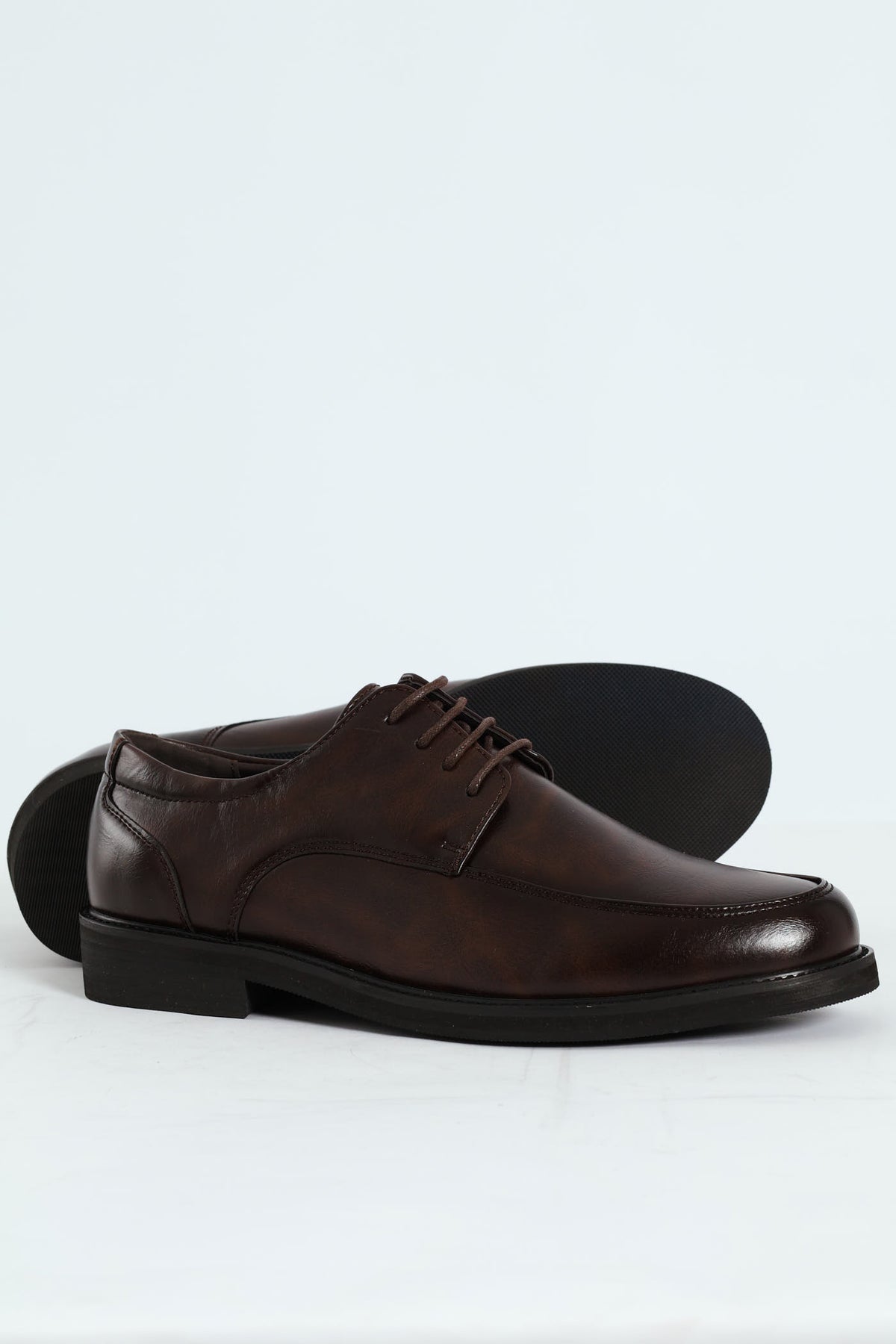 Plain Round Toe Formal Lace Up Shoe - Chocolate