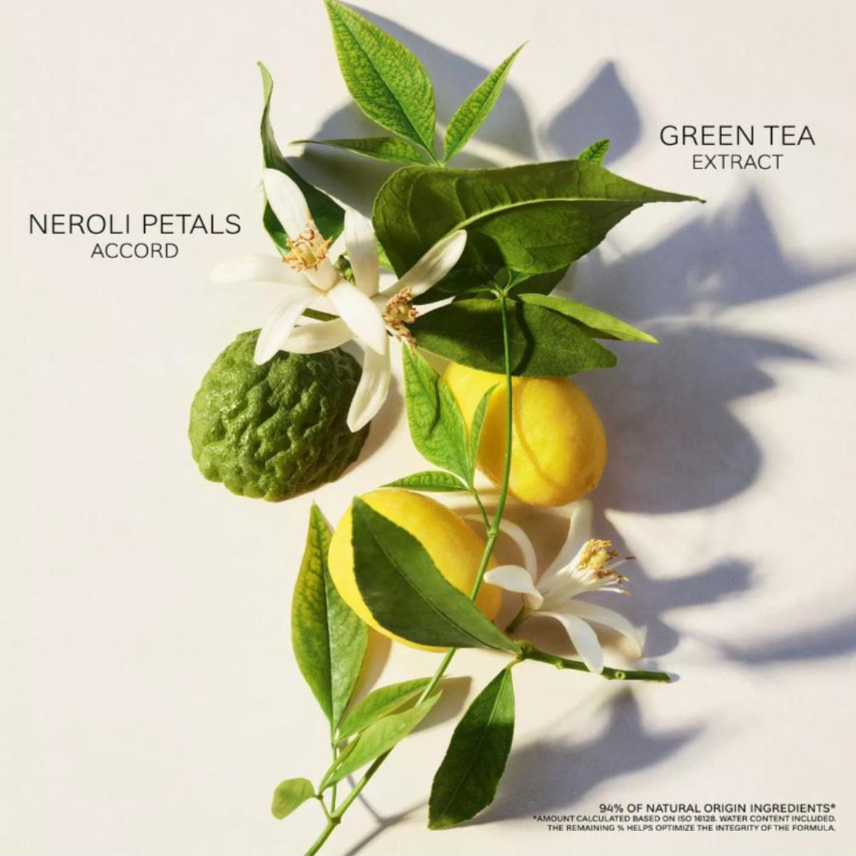 With Eau Parfumée Thé Vert, Master Perfumer Jean-Claude Ellena captures the irresistible vitality of the young tea leaves as well as their vegetal, grassy and refreshing aroma. The signature citrus aromatic skilfully combines green tea notes with a luminous floral accord of neroli petals. The fizzy texture of bergamot essence mingles with crispy, young tea leaves to recreate the timeless, rejuvenating pleasure of being immersed in nature, imbuing all the senses with new energy.