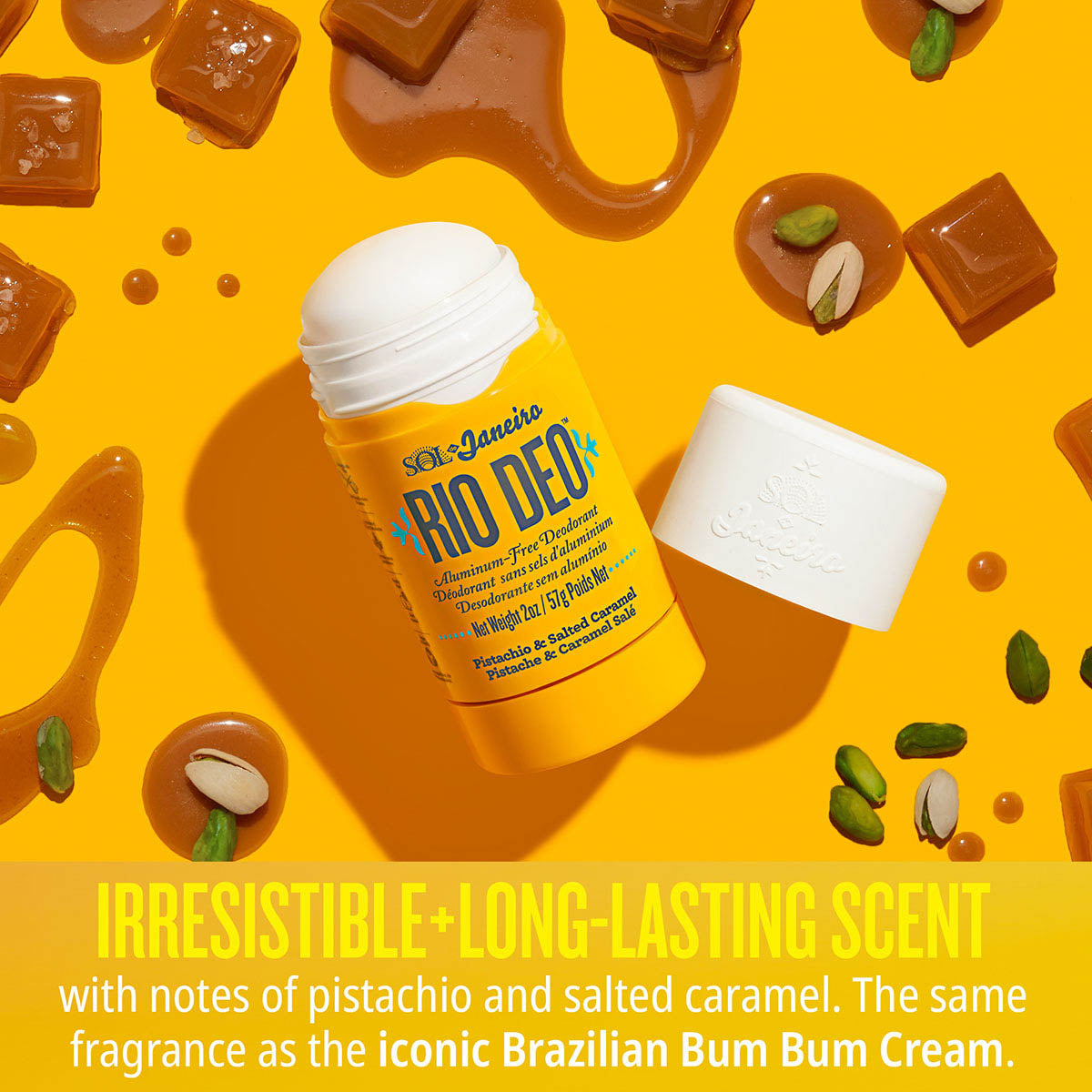 An aluminum-free, baking soda-free deodorant that eliminates odor to keep you smelling amazing from sunrise to sunset. It’s the Sol de Janeiro way. Rio Deo doesn’t mask odor with fragrance. It eliminates odor, then leaves you cheirosa (smelling incredible) with the iconic Cheirosa 62™ fragrance — the same as our iconic Brazilian Bum Bum Cream scent.