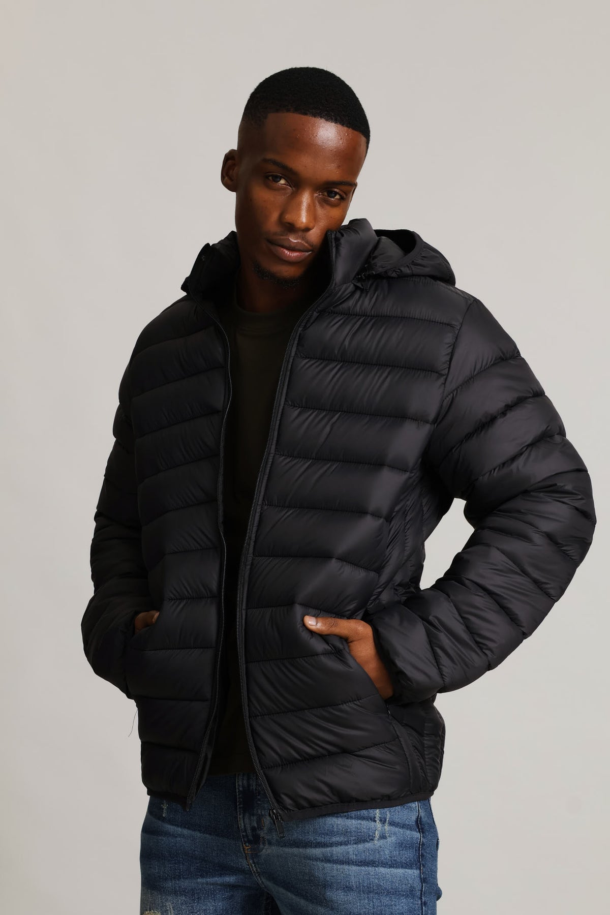 Basic Hooded Puffer Jacket - Black