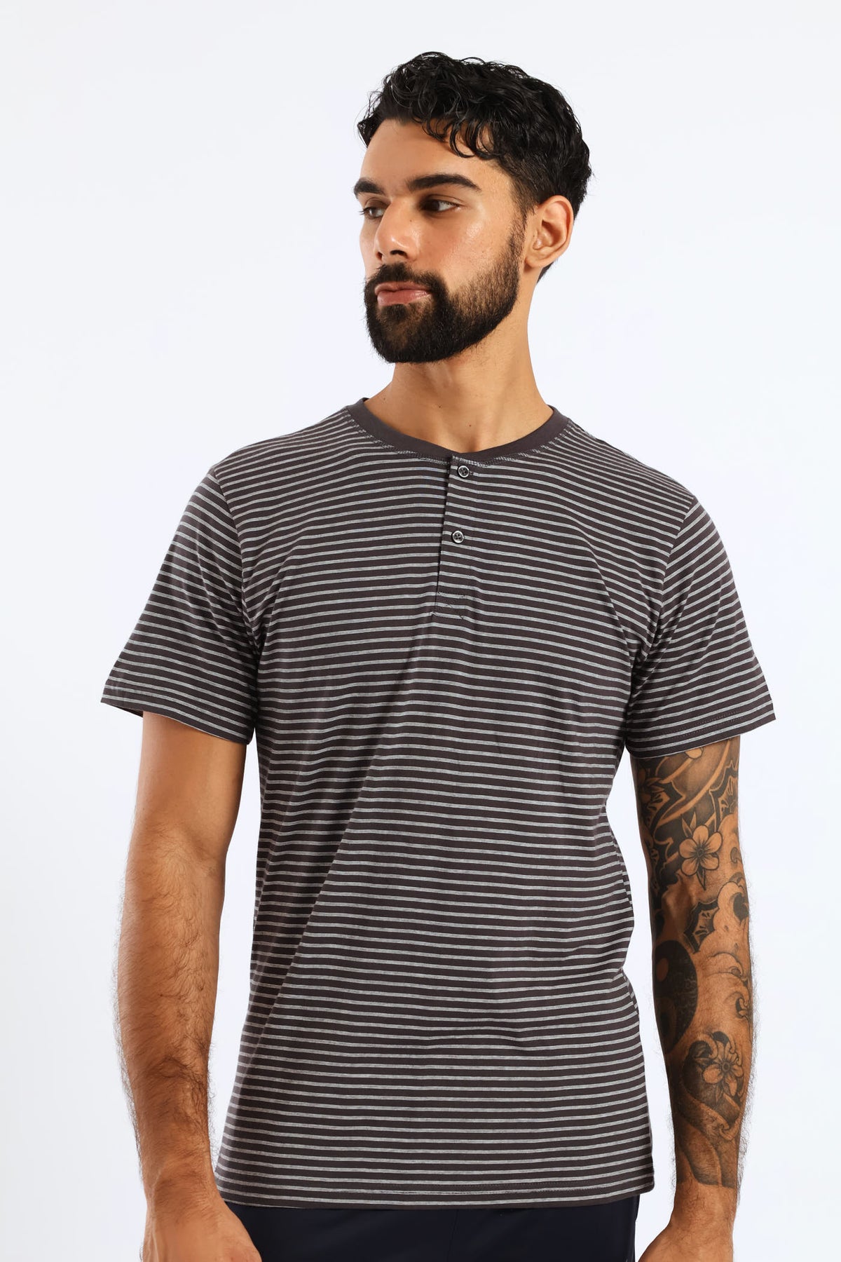 Feather Stripe Henley Top - Cream/Charcoal