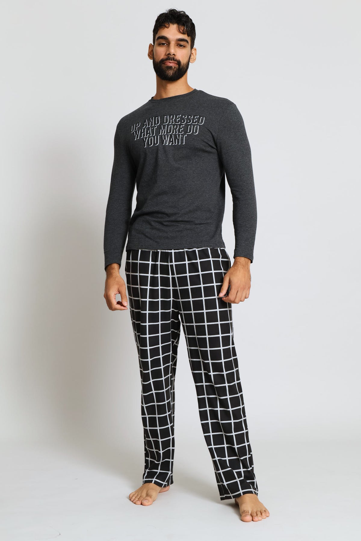 Up & Dressed Chest Print Long Sleeve Top - Dark Grey