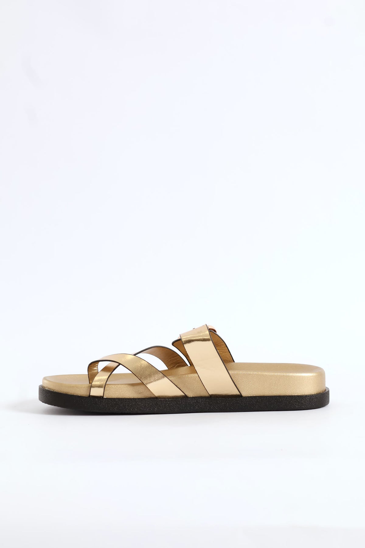 Buckle Detail Toe Post Comfort Sandal - Gold