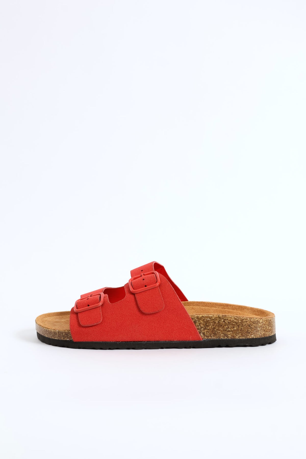 Double Band Slide Sandal With Monotone Buckles - Red