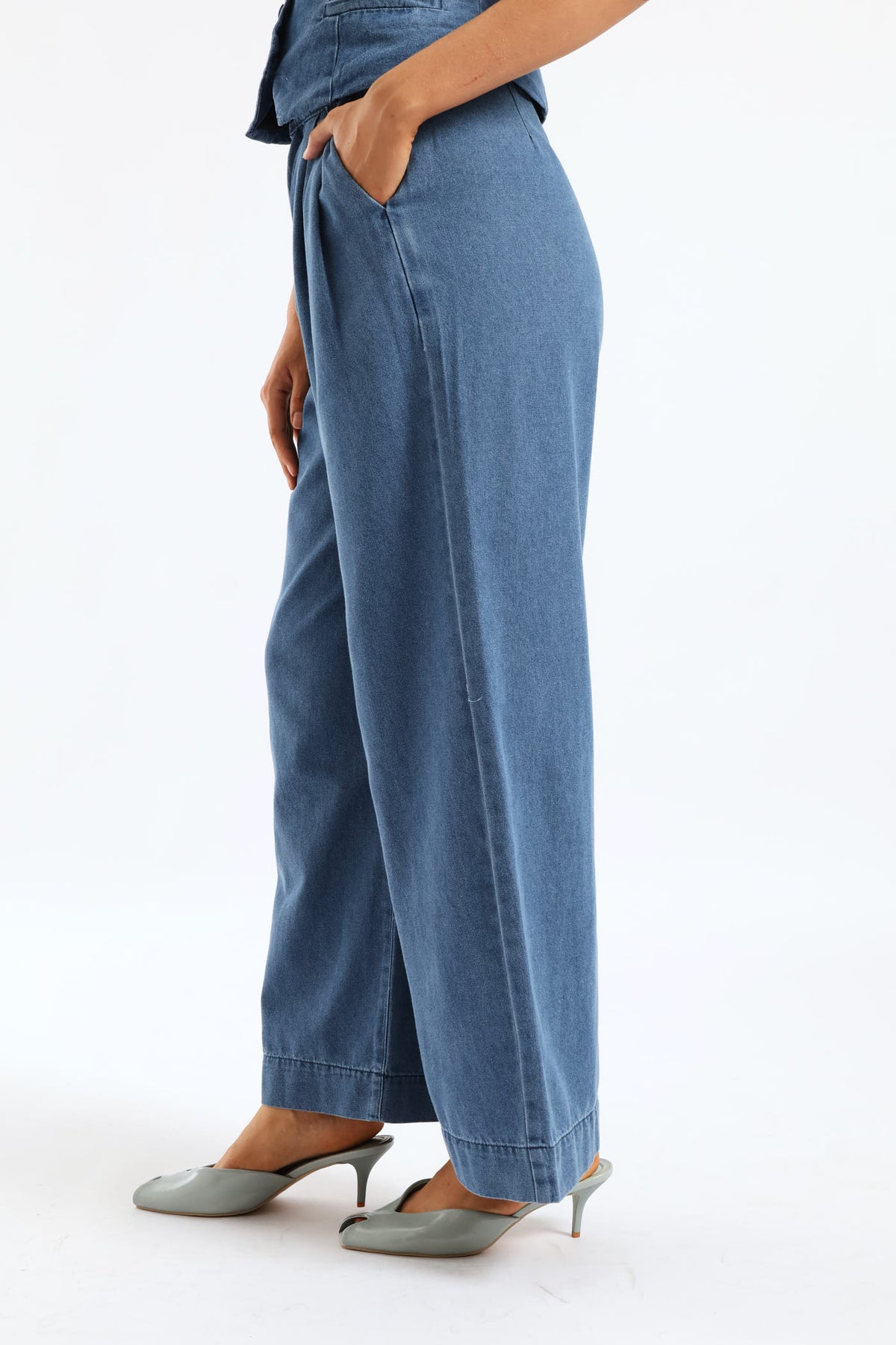 Pleated Detail Wide Leg Denim Trouser - Dark Wash