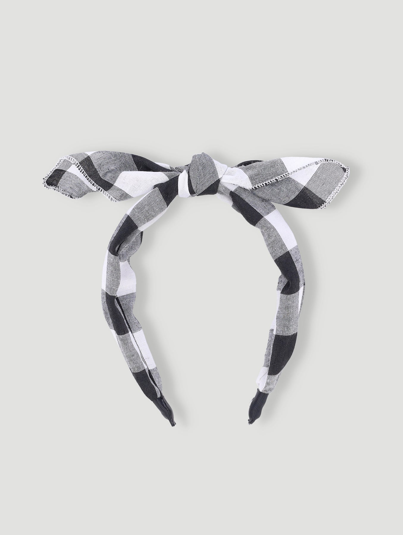 Girls Check Print Aliceband - Black