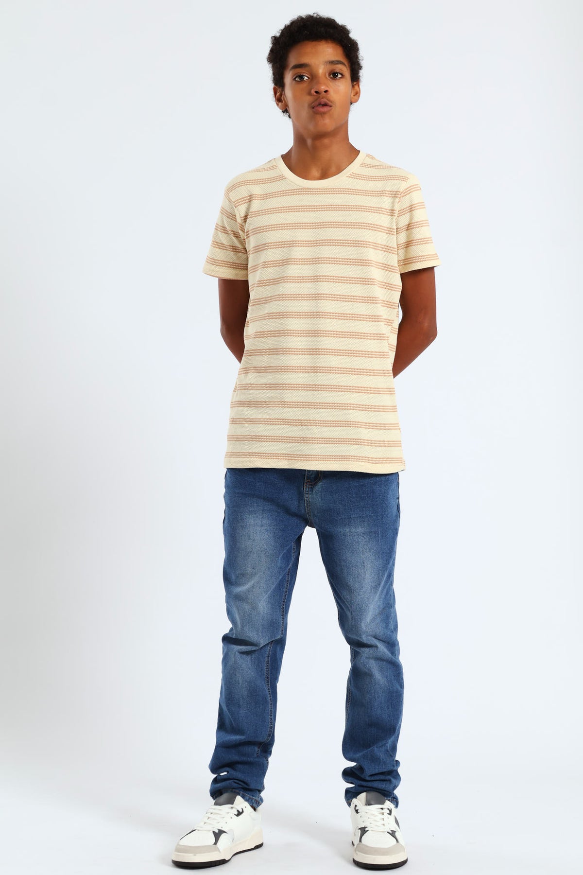 Boys Stripe Jacquard Knit Tee - Cream