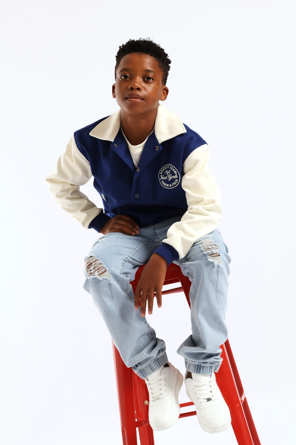 Bleach Blue Ripped Denim Jogger Jean - Blue