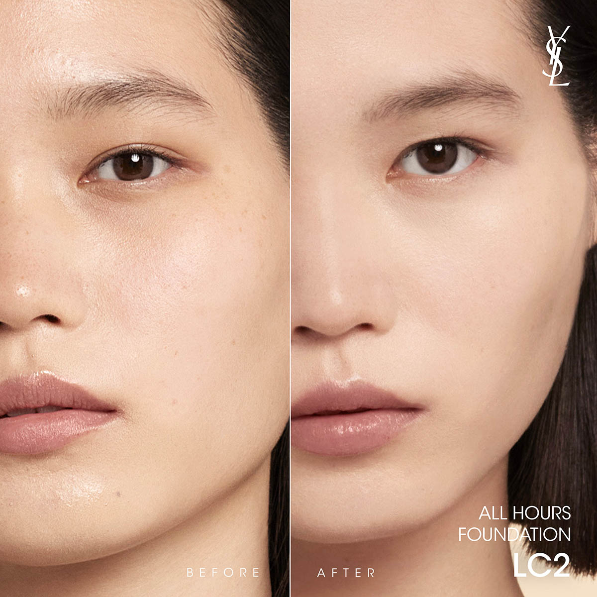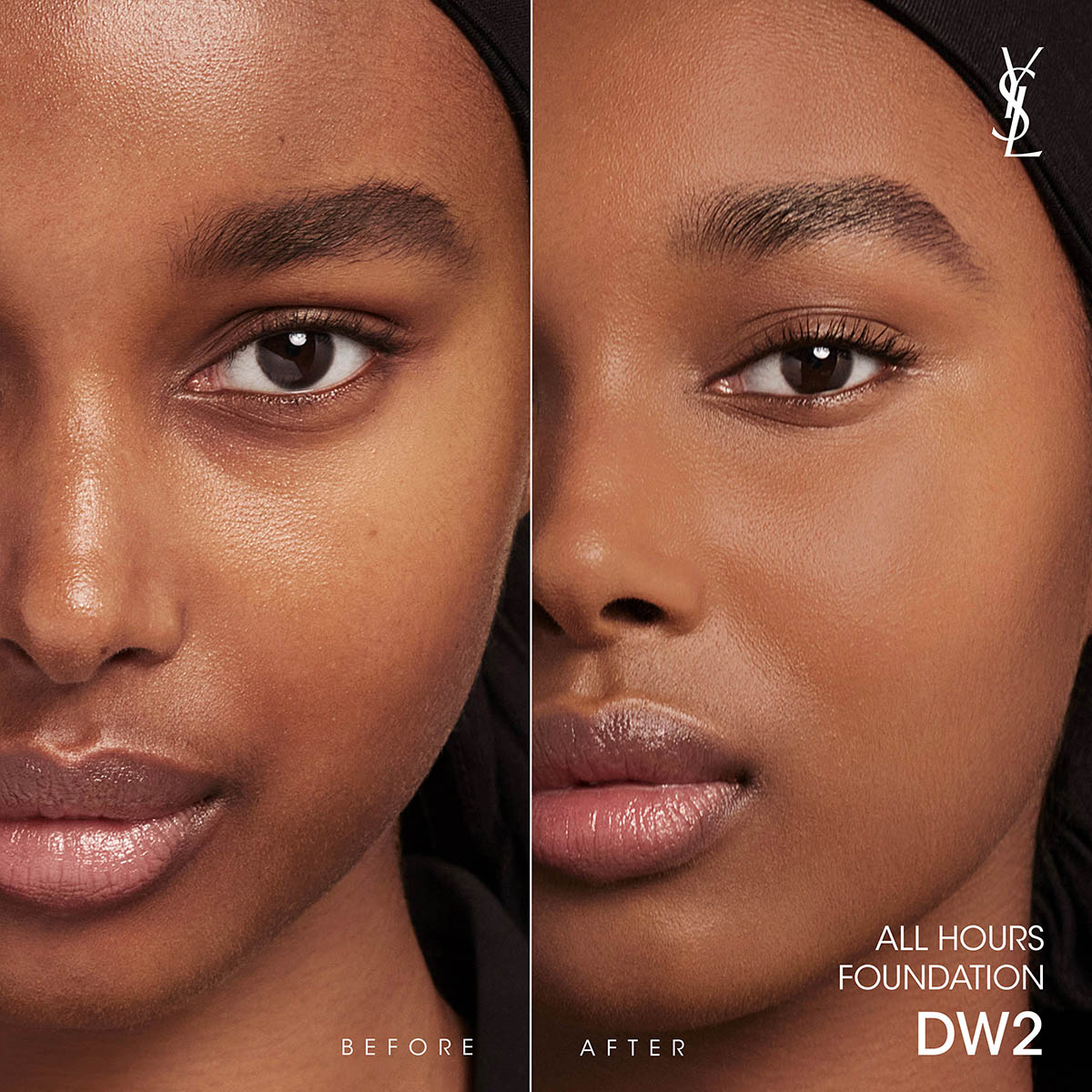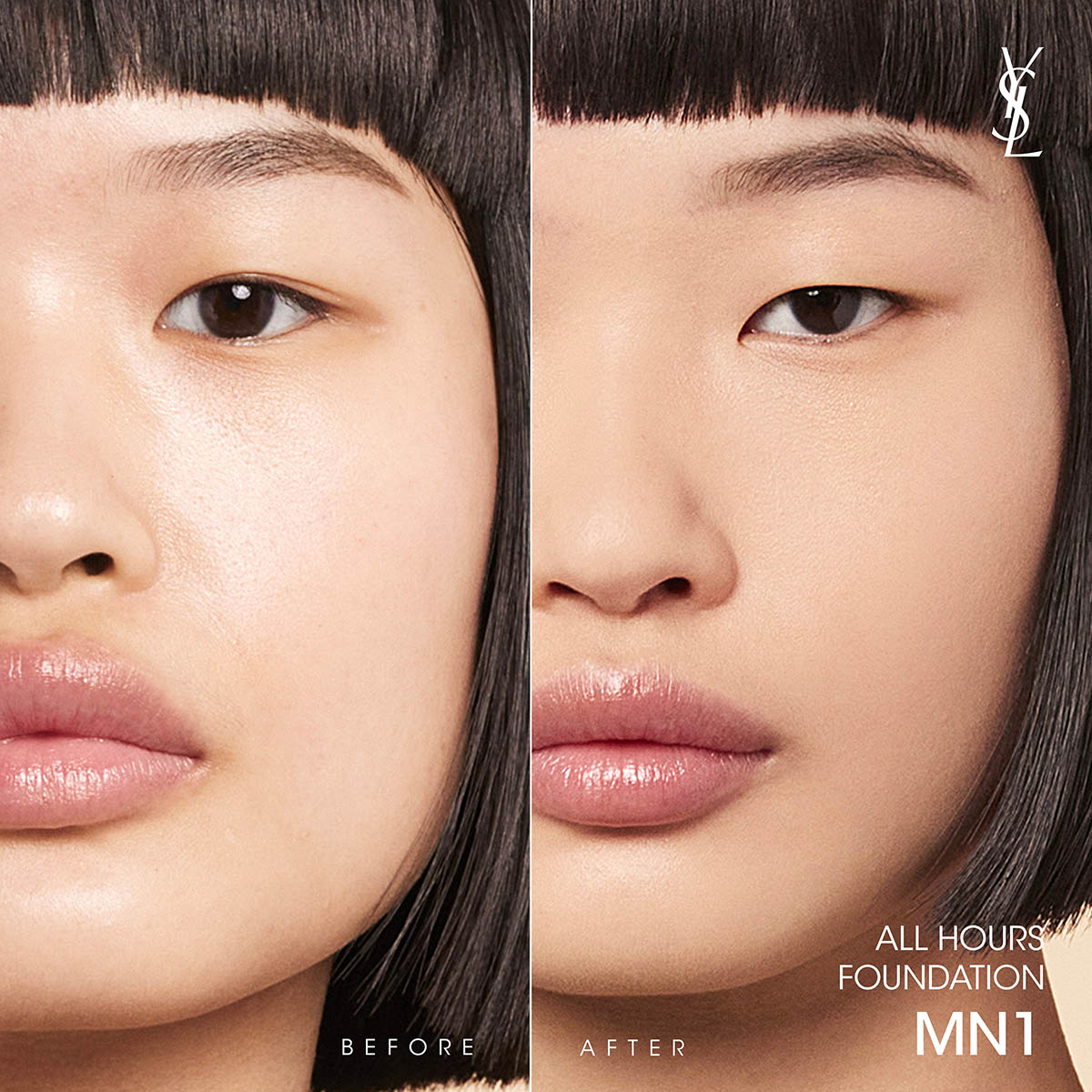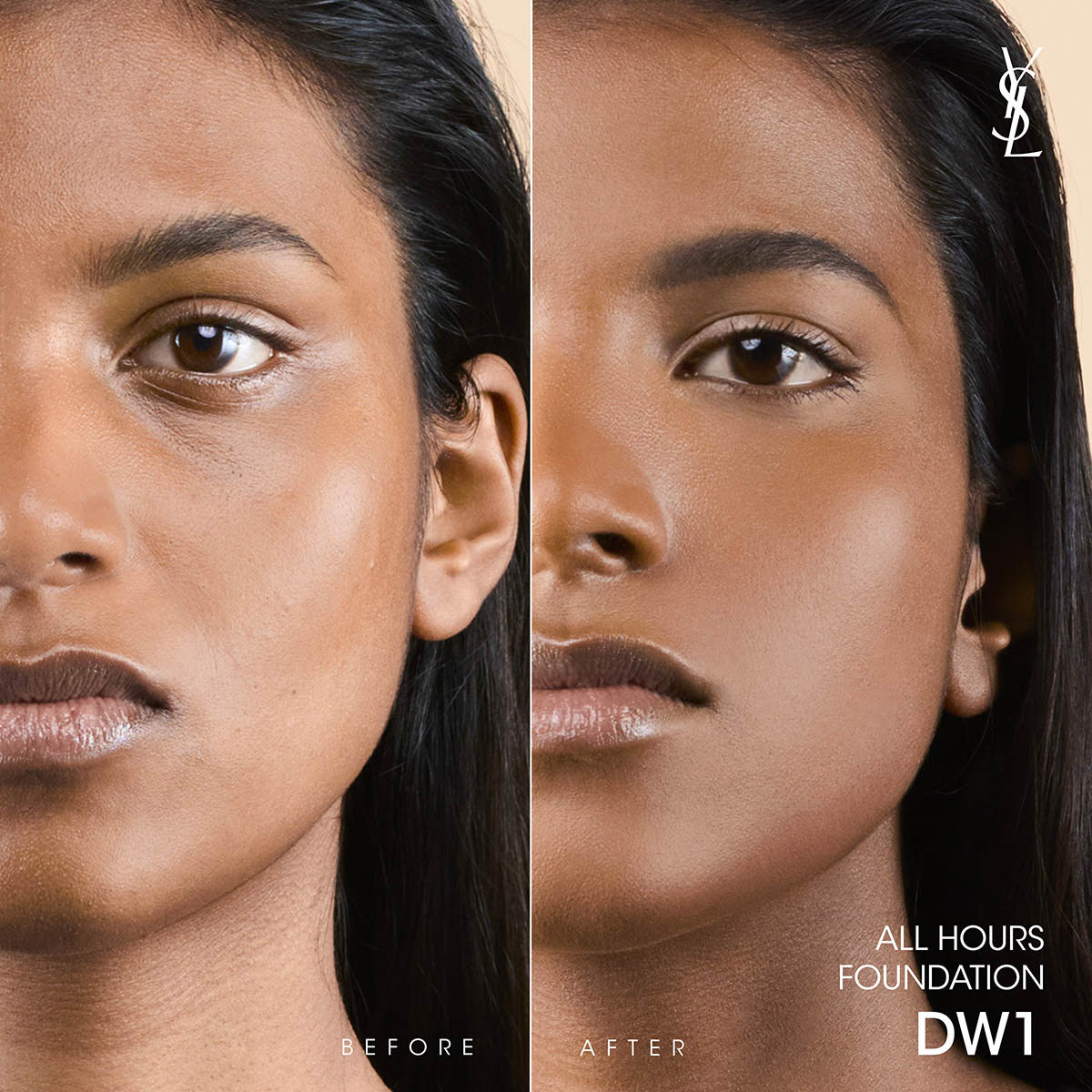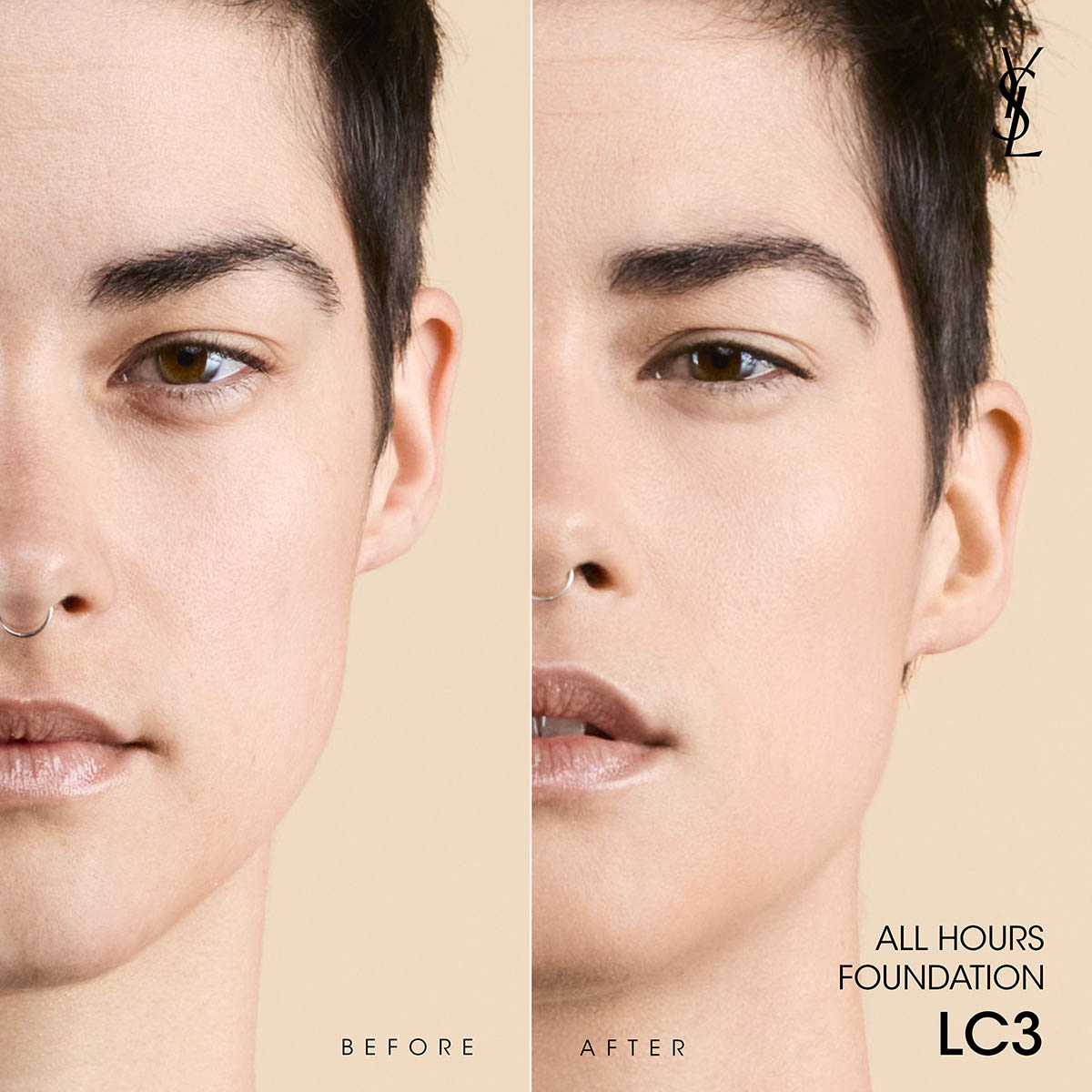 Formulated with long-wear polymers, All Hours Foundation blurs imperfections and controls shine for 24 hours, even in extreme humidity. Its fully buildable texture blends seamlessly for customized coverage.
