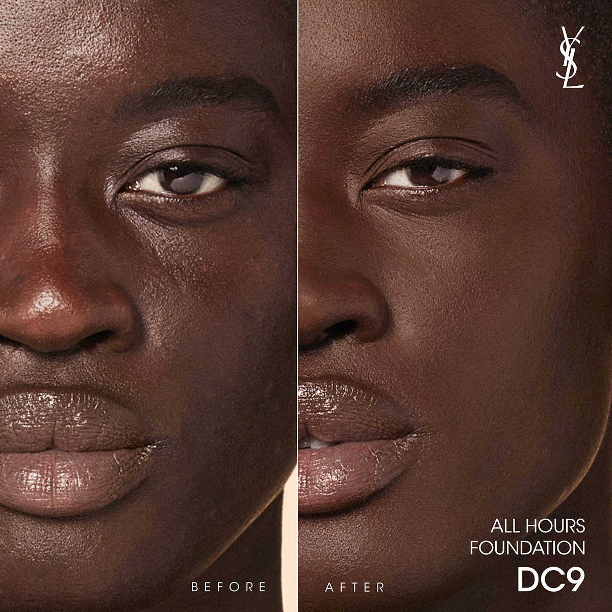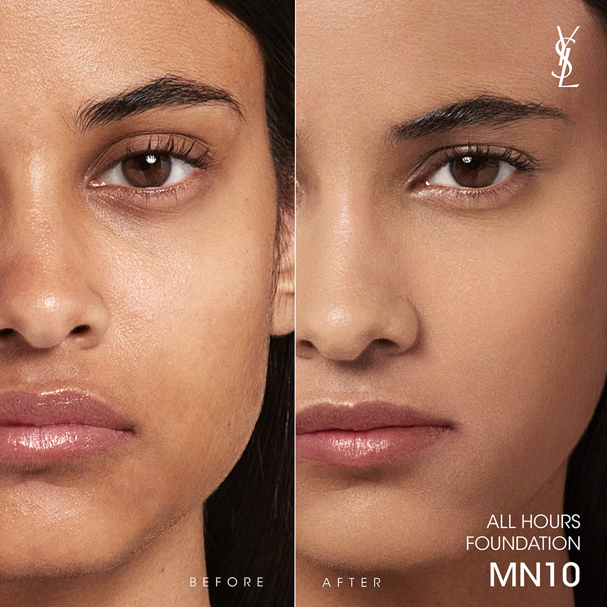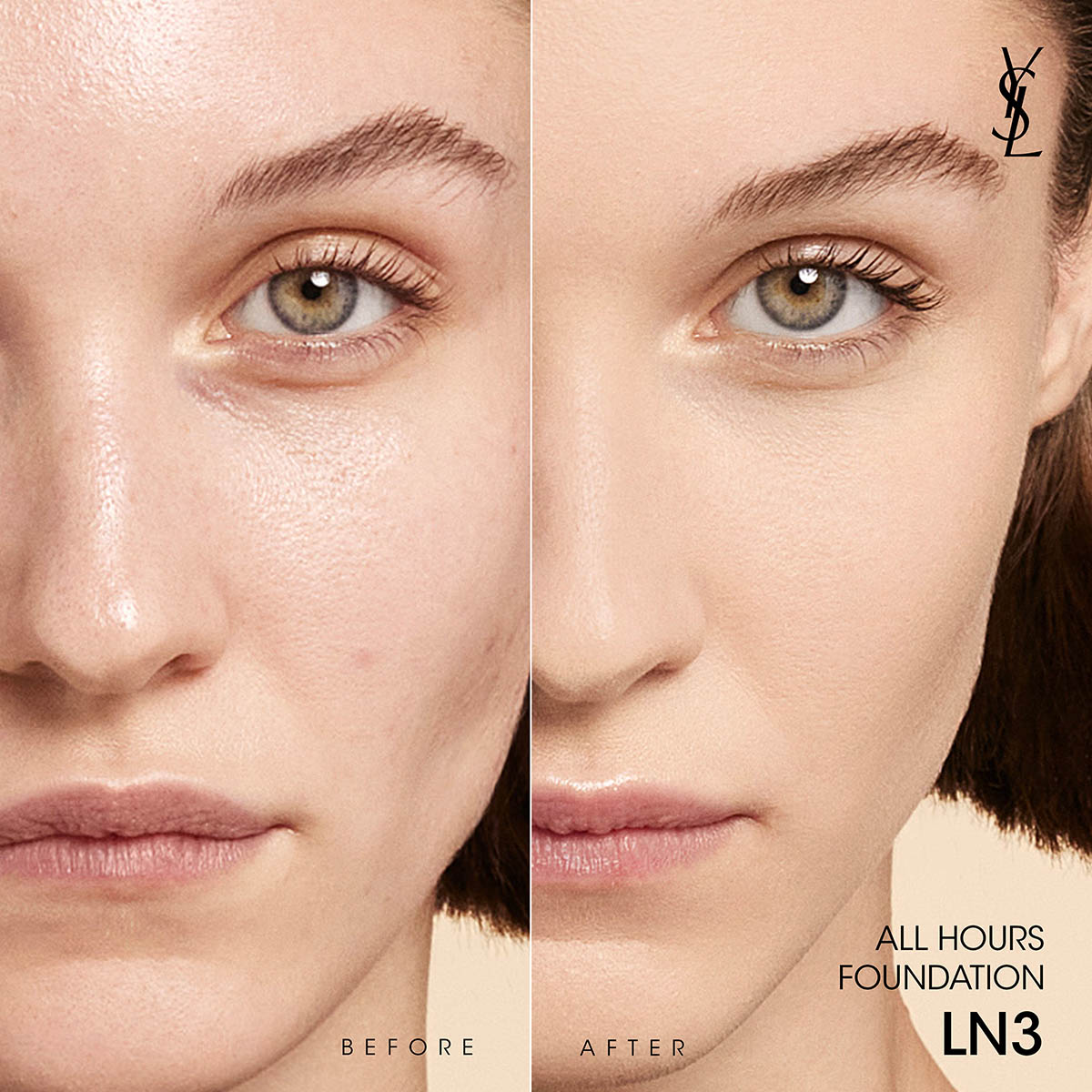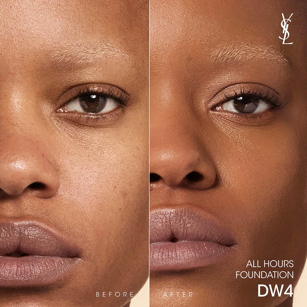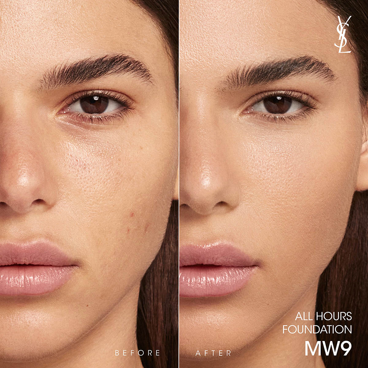 Formulated with long-wear polymers, All Hours Foundation blurs imperfections and controls shine for 24 hours, even in extreme humidity. Its fully buildable texture blends seamlessly for customized coverage.