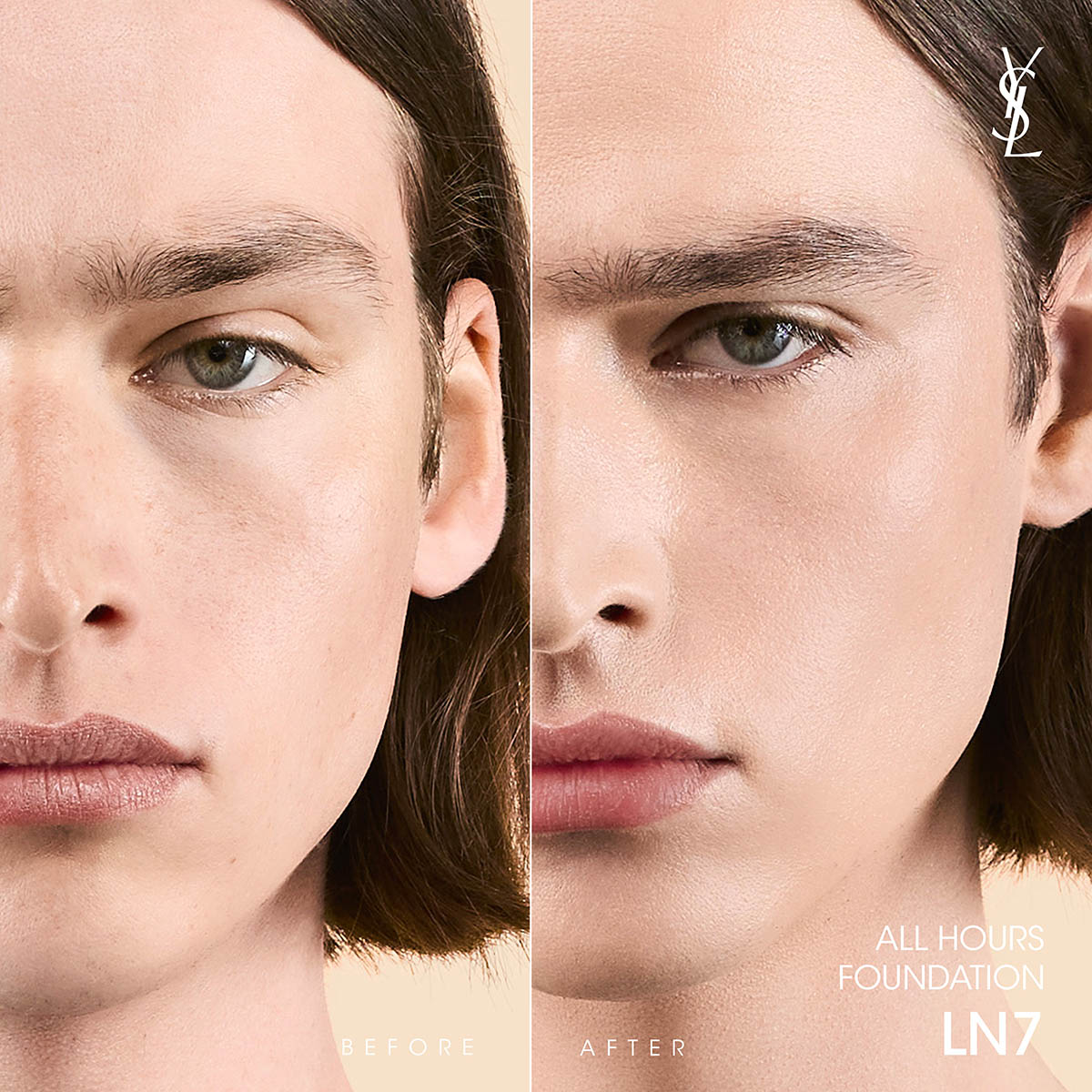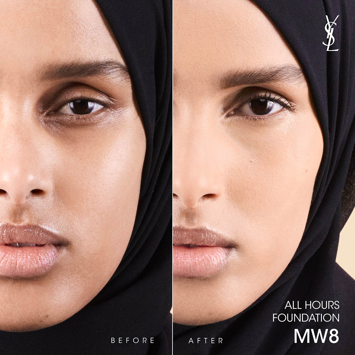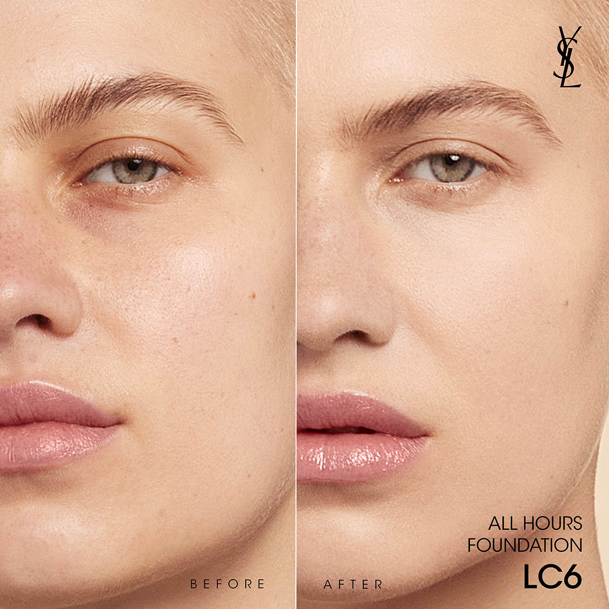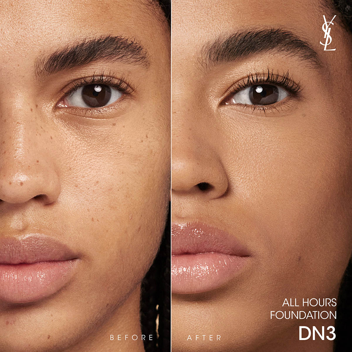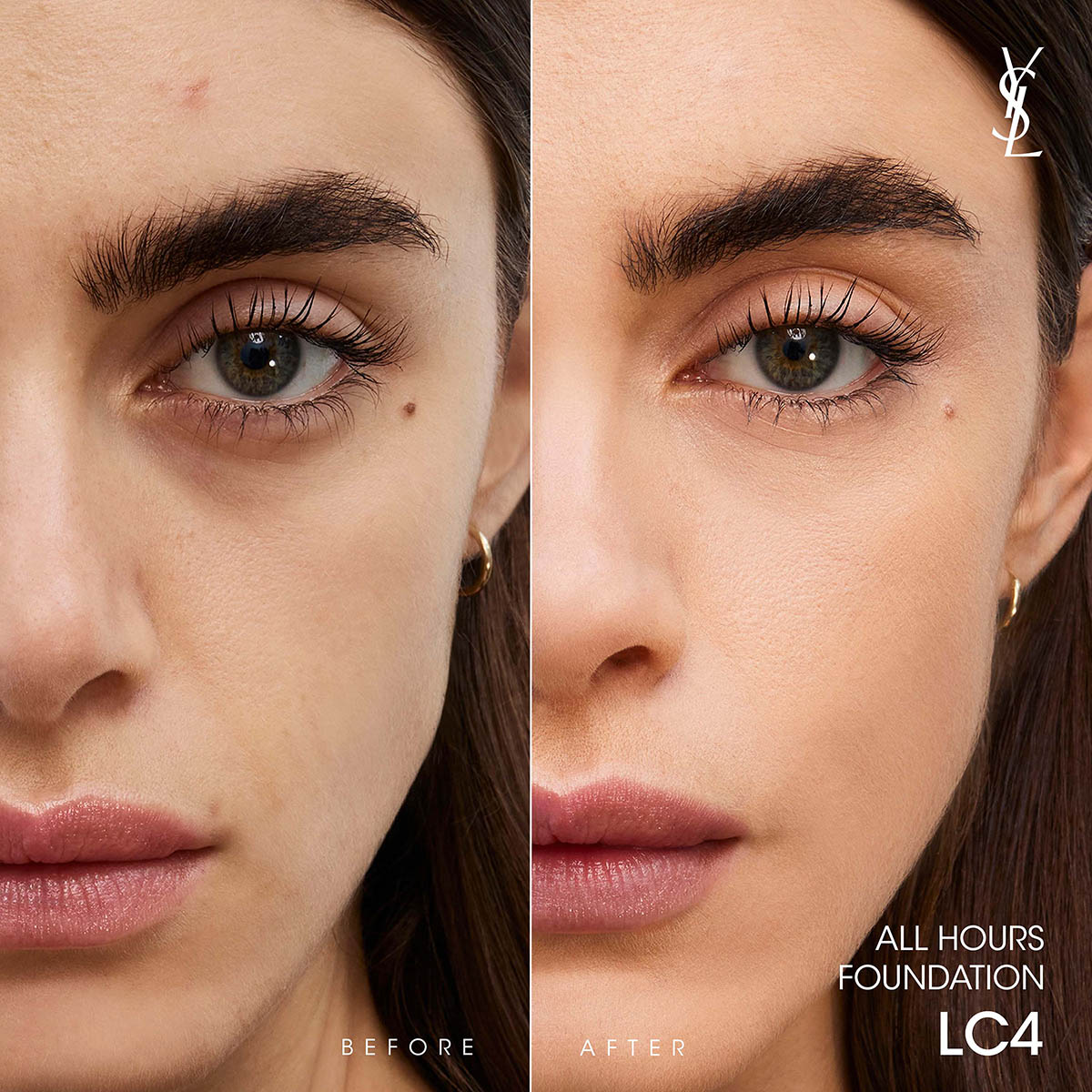 Formulated with long-wear polymers, All Hours Foundation blurs imperfections and controls shine for 24 hours, even in extreme humidity. Its fully buildable texture blends seamlessly for customized coverage.