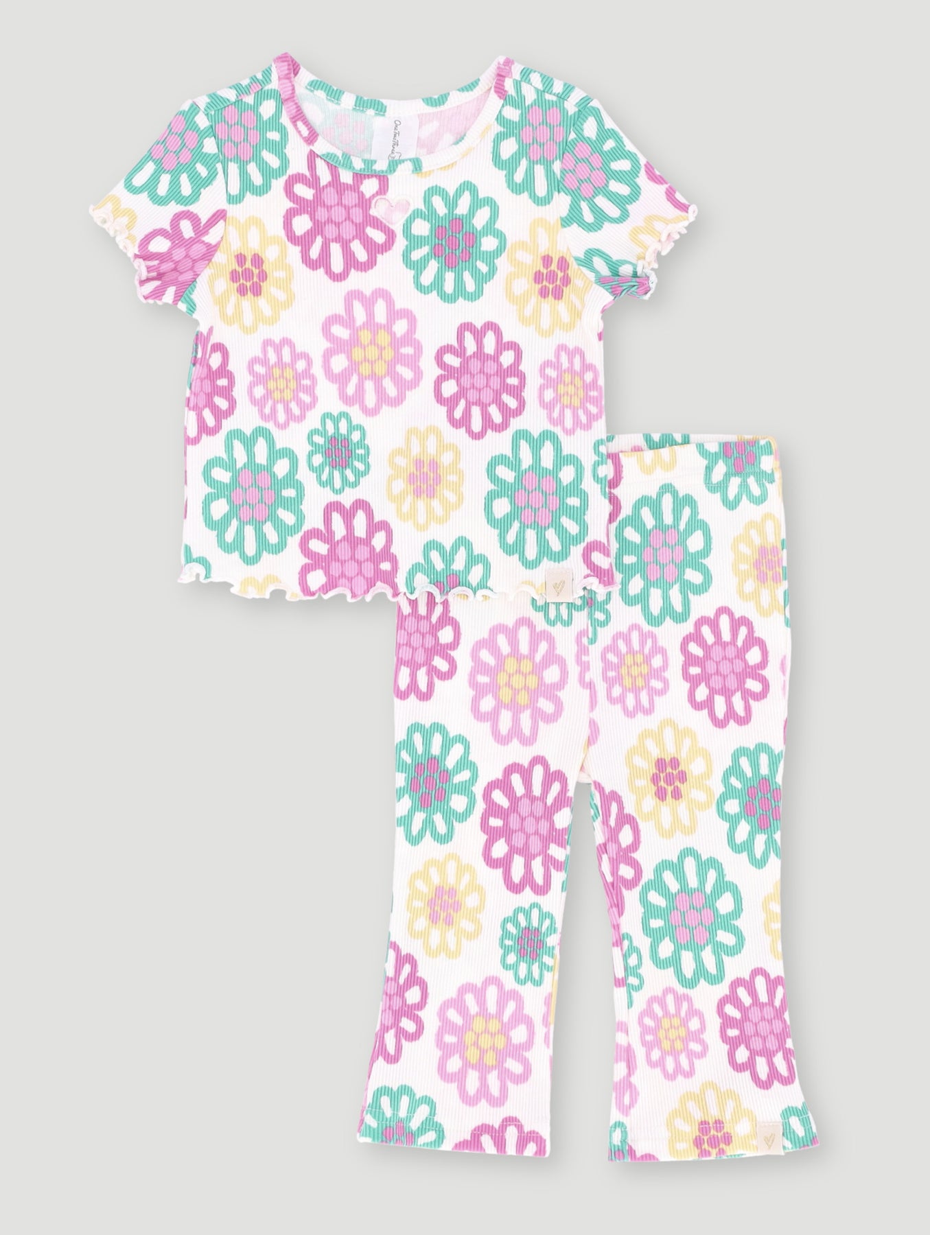 Baby Girls Ribbed Flower Printed Set Knit - White Multi