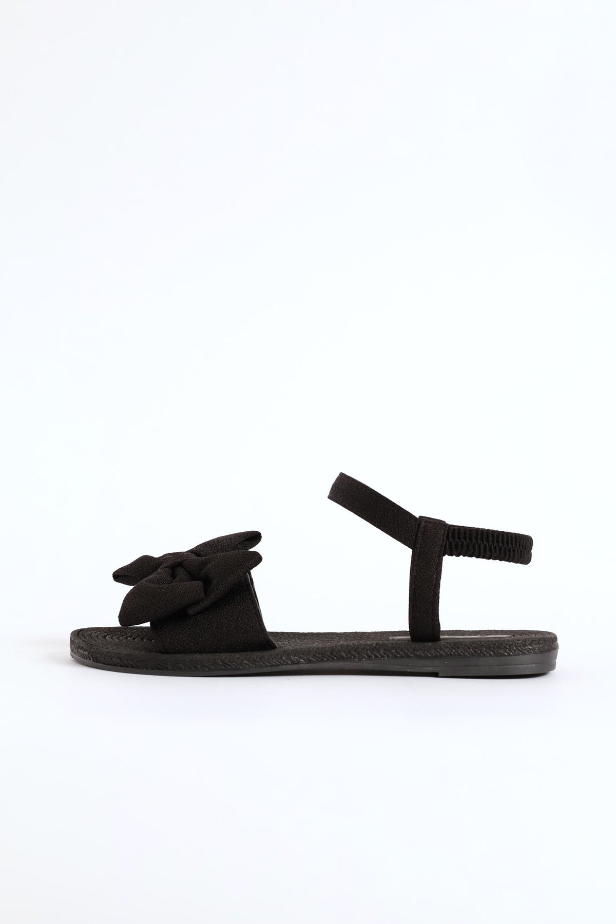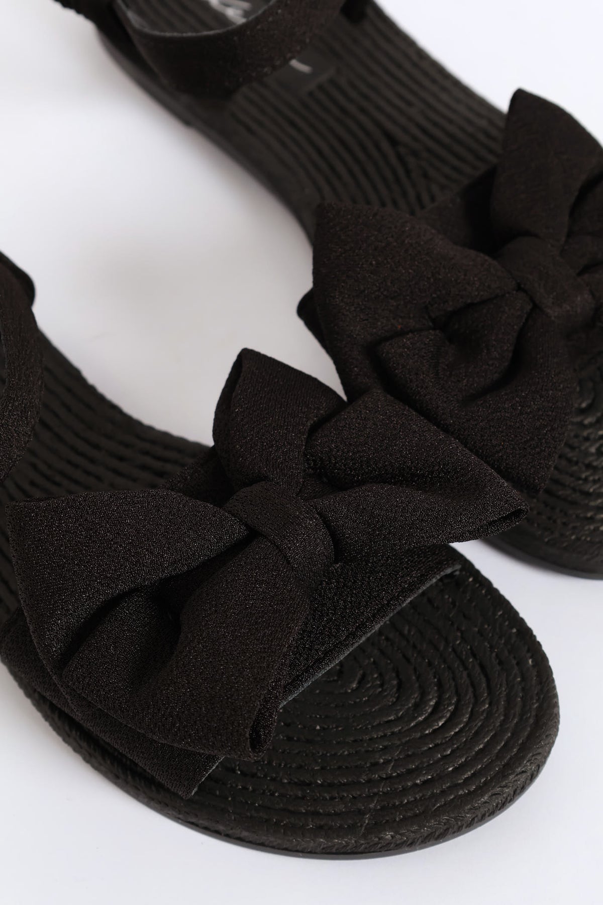 Elasticated Ankle Strap Bow Single Band Sandal  - Black