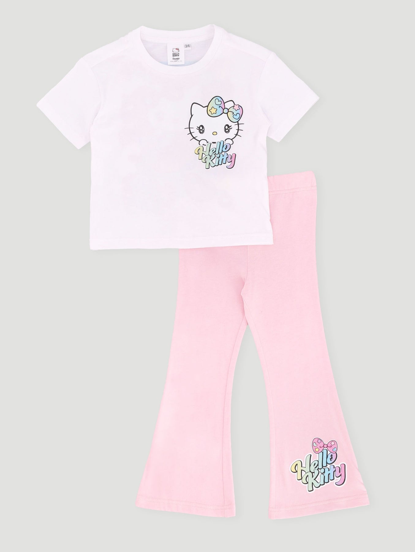 Pre-Girls Hello Kitty Tee & Flare Leg Pant Set - White