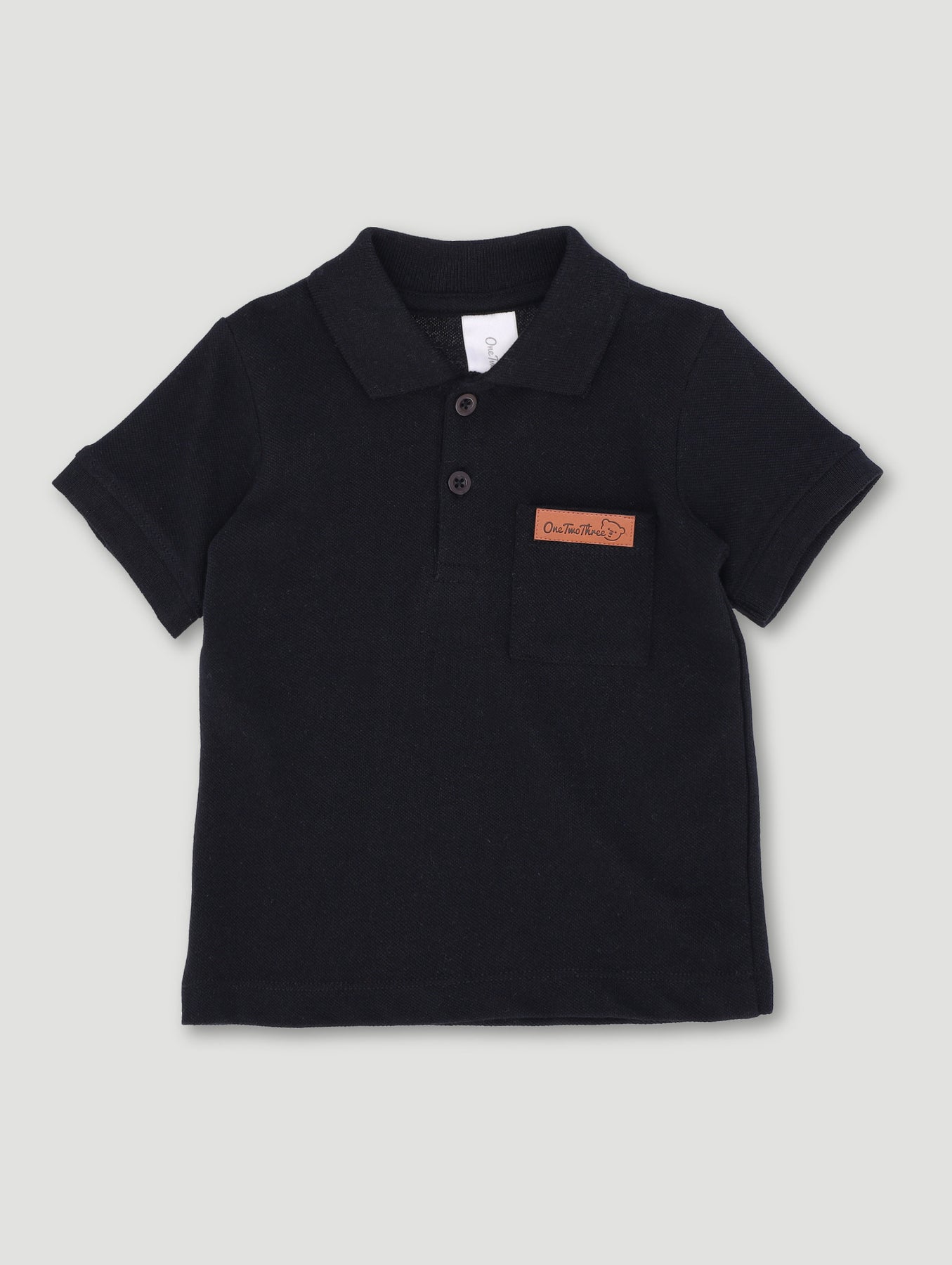 Baby Boys Plain Bear Badge Knit Golfer - Black