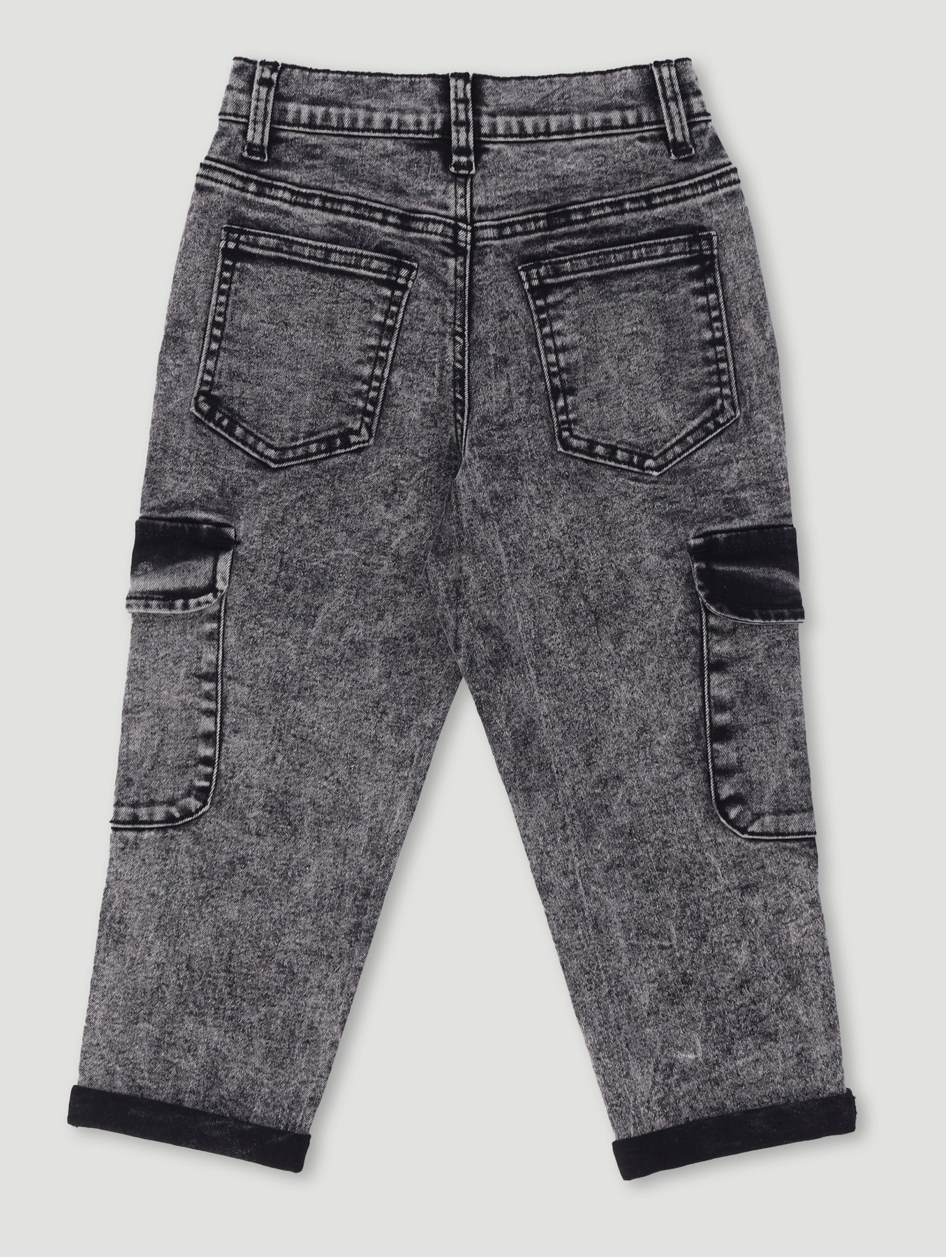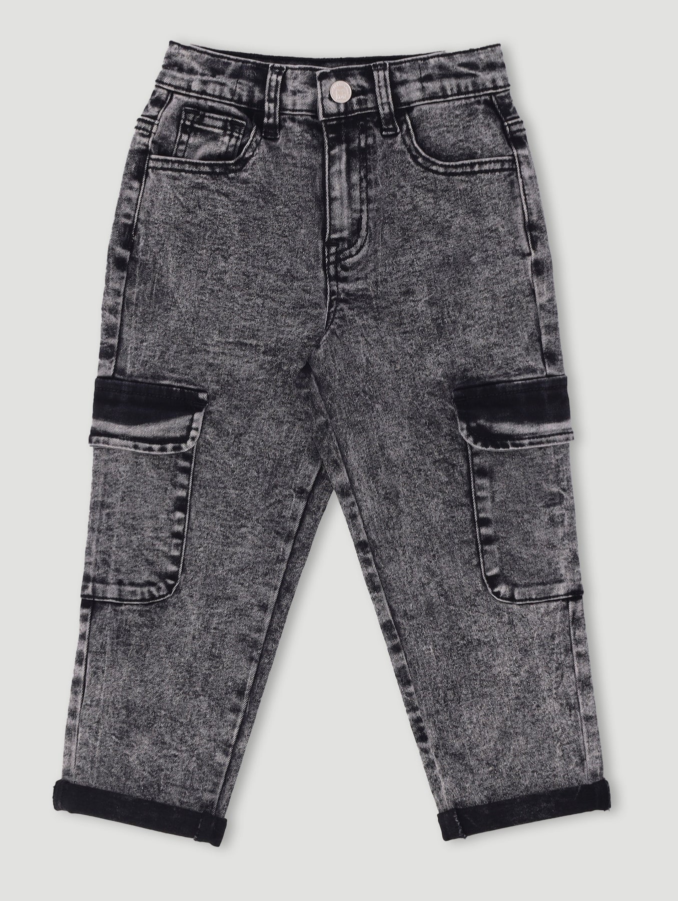 Pre-Boys Acid Wash Cargo Denim - Charcoal