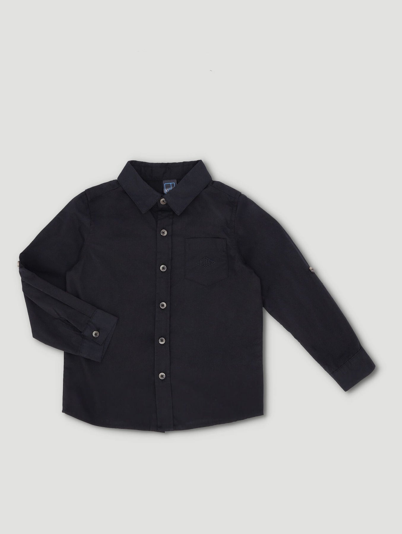 Pre-Boys Long Sleeve Plain Roll-Up Sleeve Shirt - Black