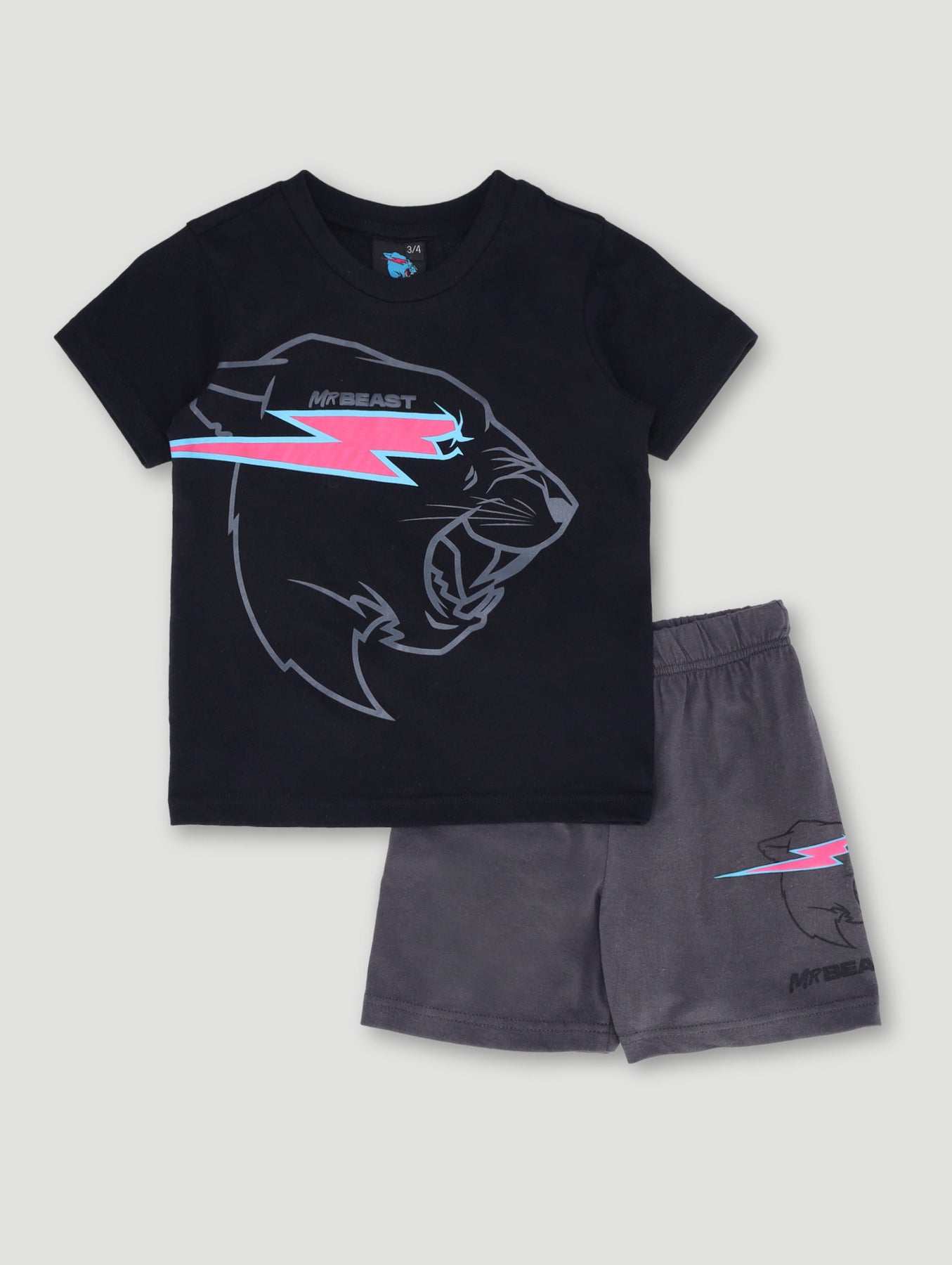 Pre-Boys Mr Beast Sleep Set - Black/Grey