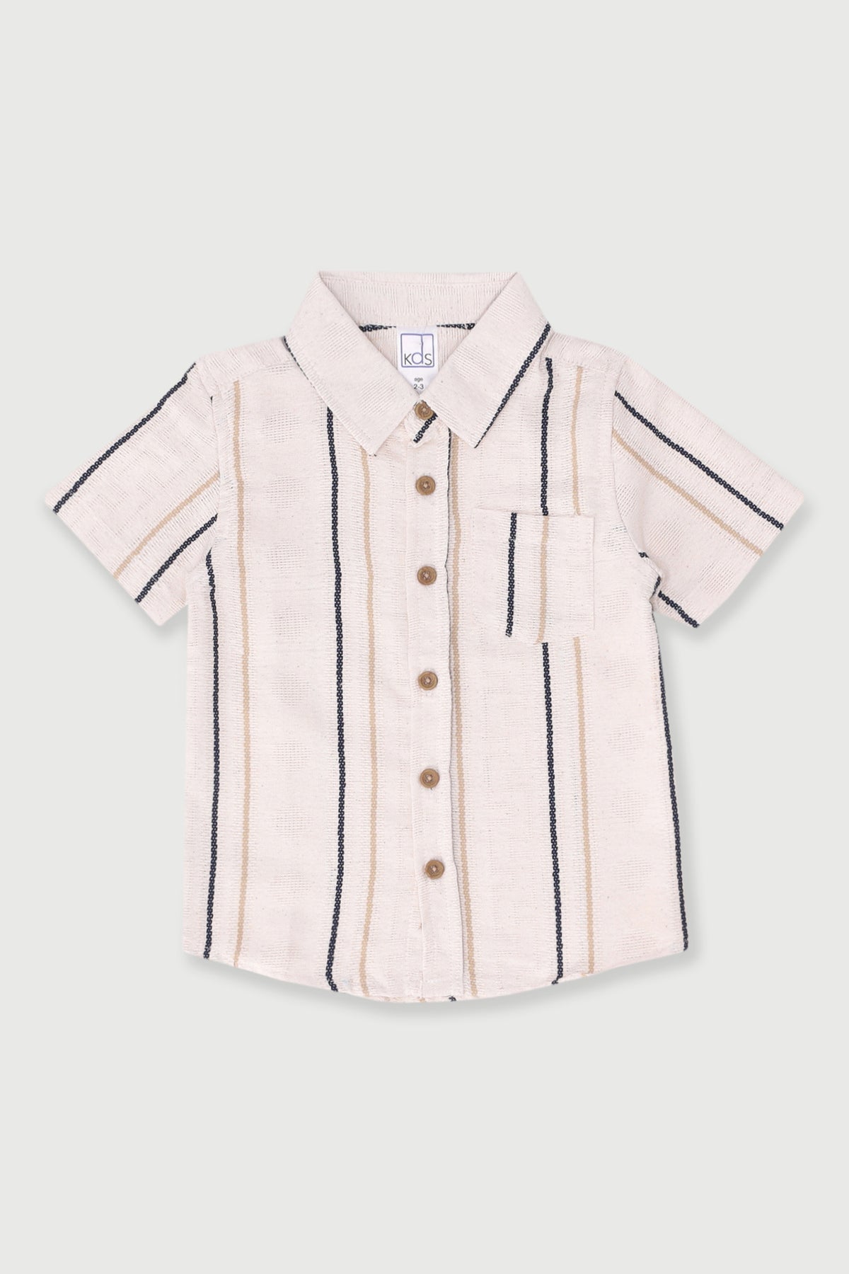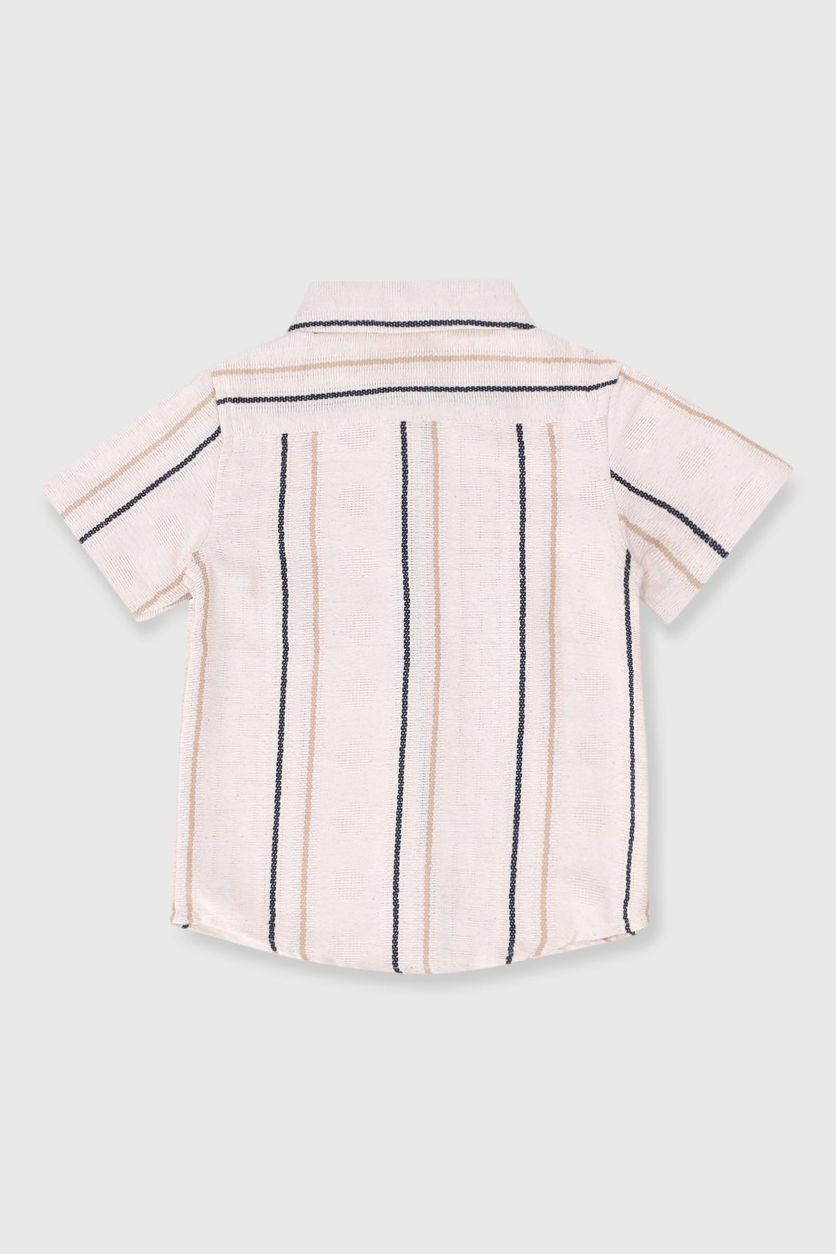 Pre-Boys Woven Textured Striped Shirt - Stone/Navy