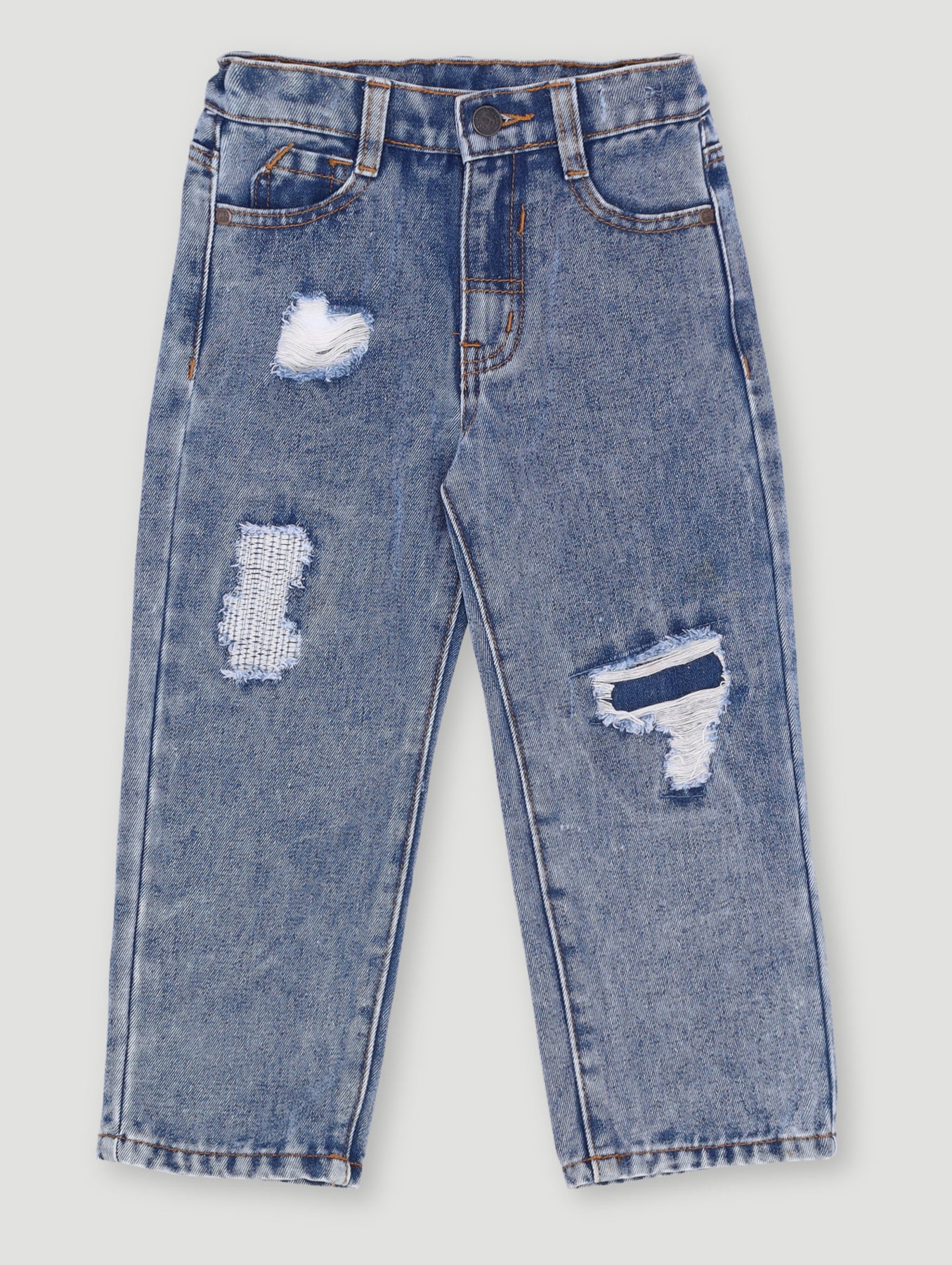 Pre- Boys Relaxed Straight Leg Rip Denim - Dark Blue