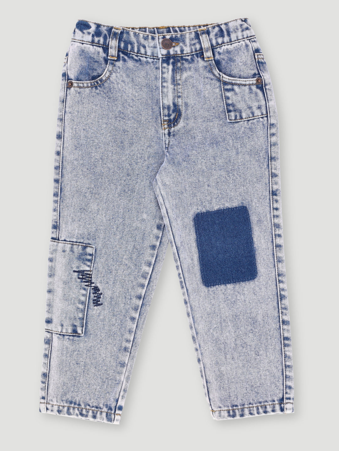 Pre- Boys Fashion Patch Straight Leg Denim - Acid Wash