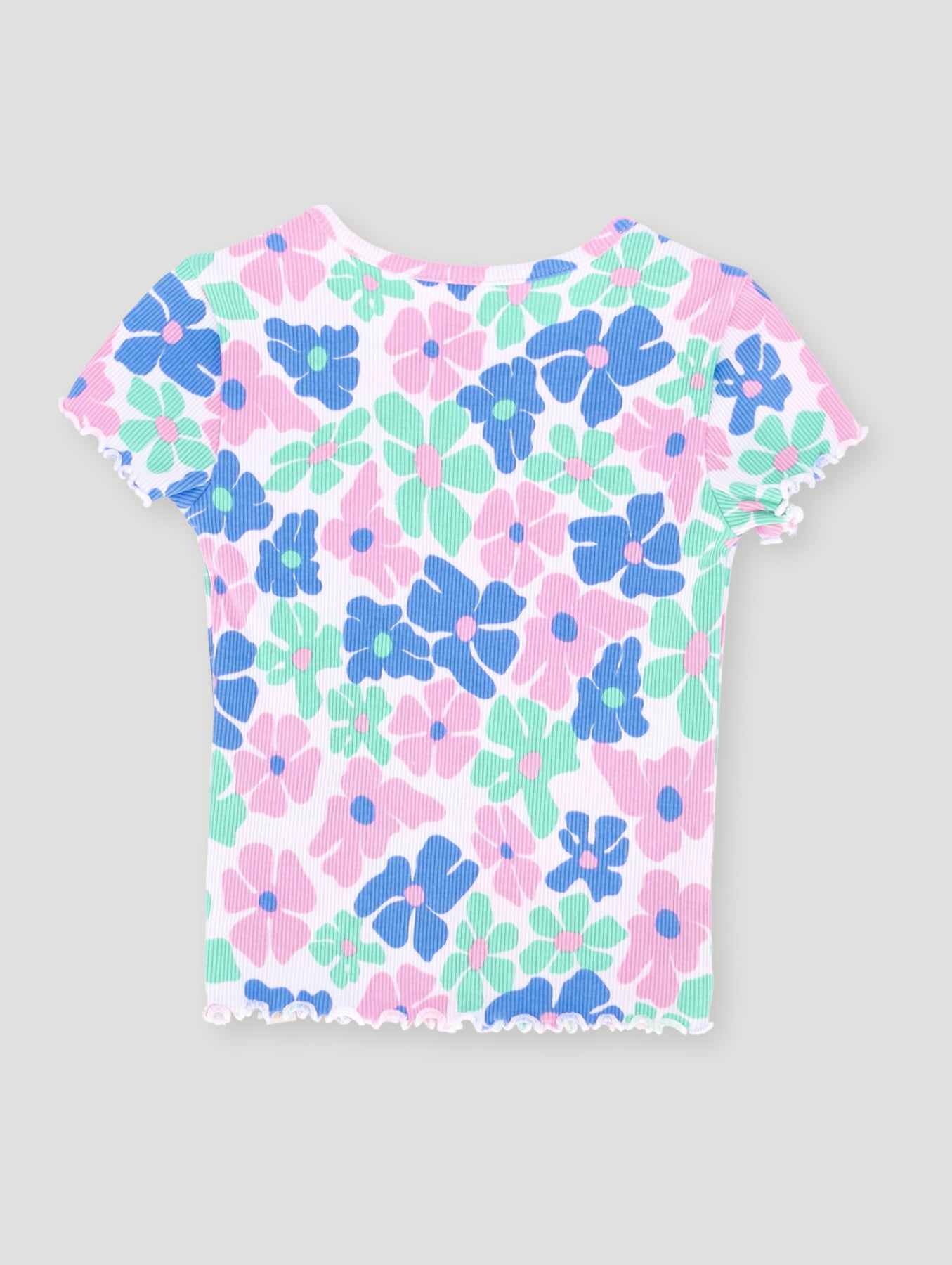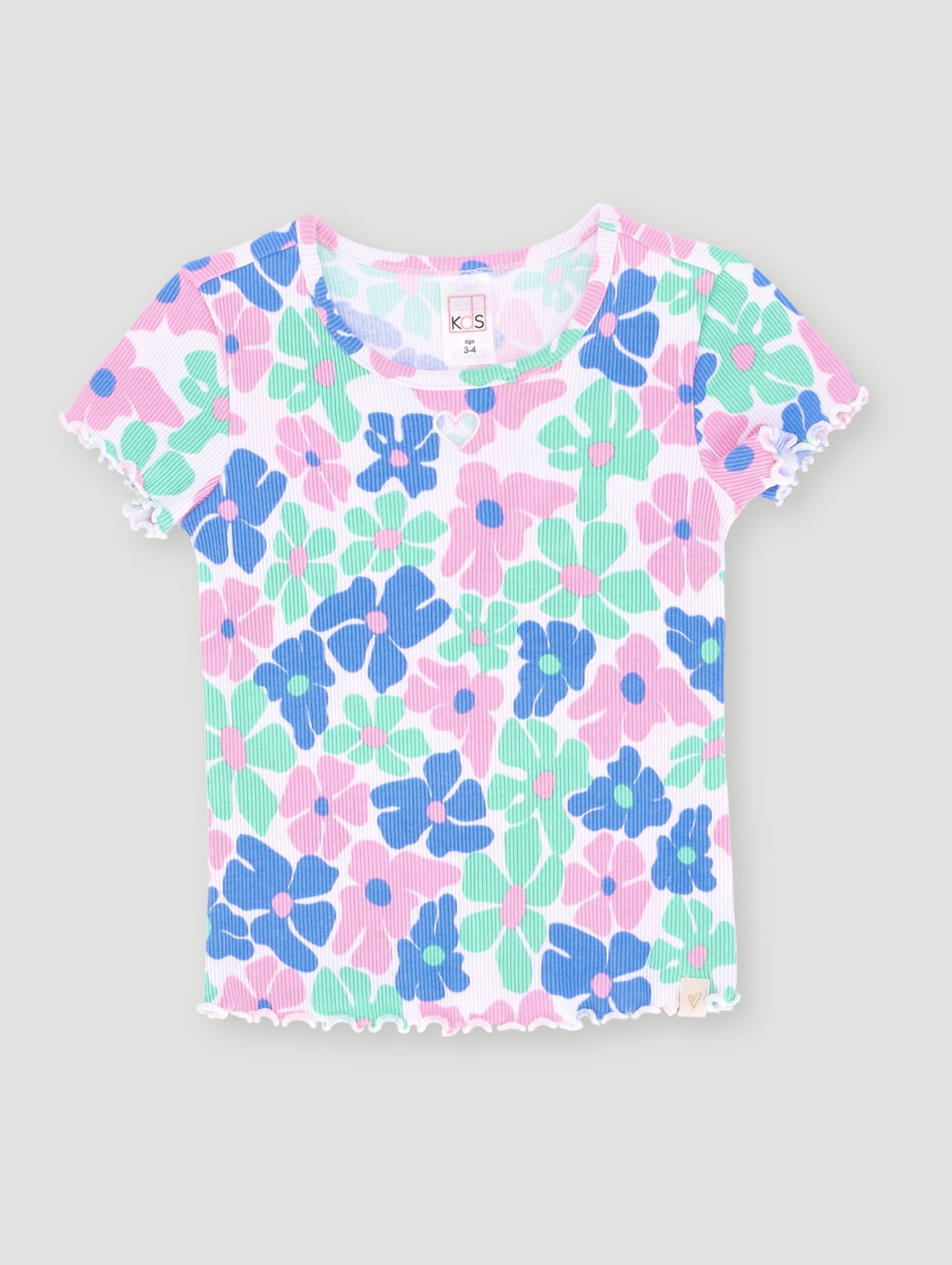 Pre- Girls Cut Out Embroidery Rib Top - White