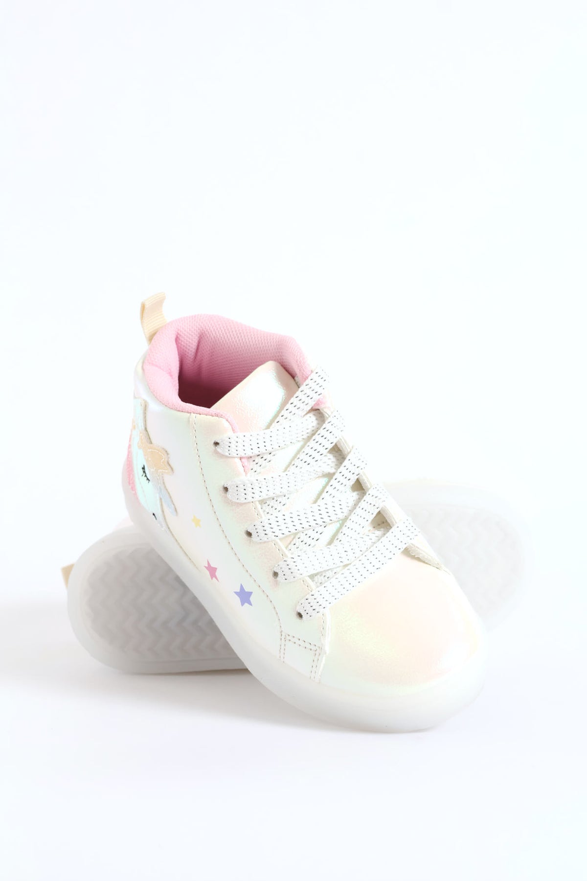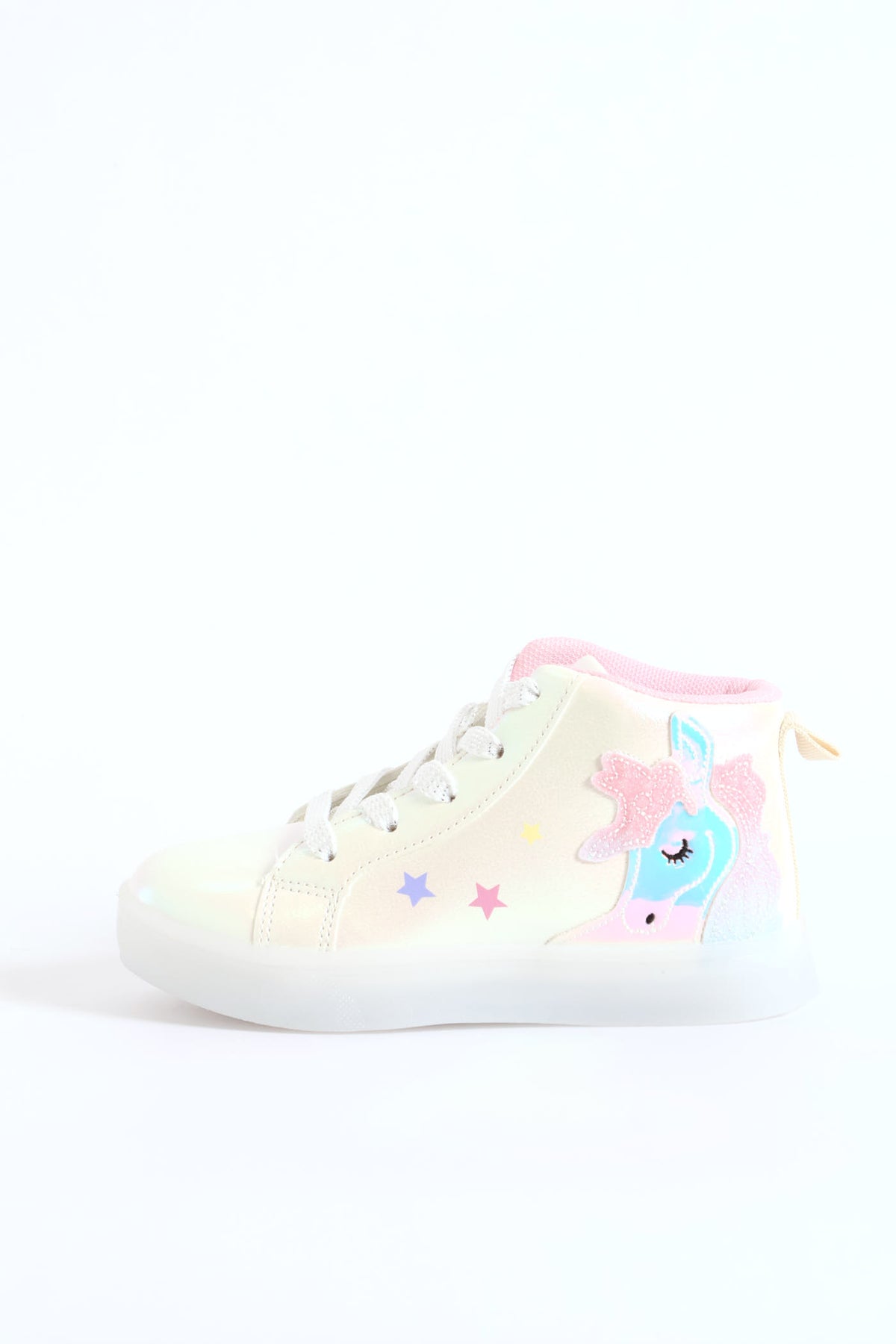 Pre-Girls Holo Light Up Unicorn Hitop Sneaker - White