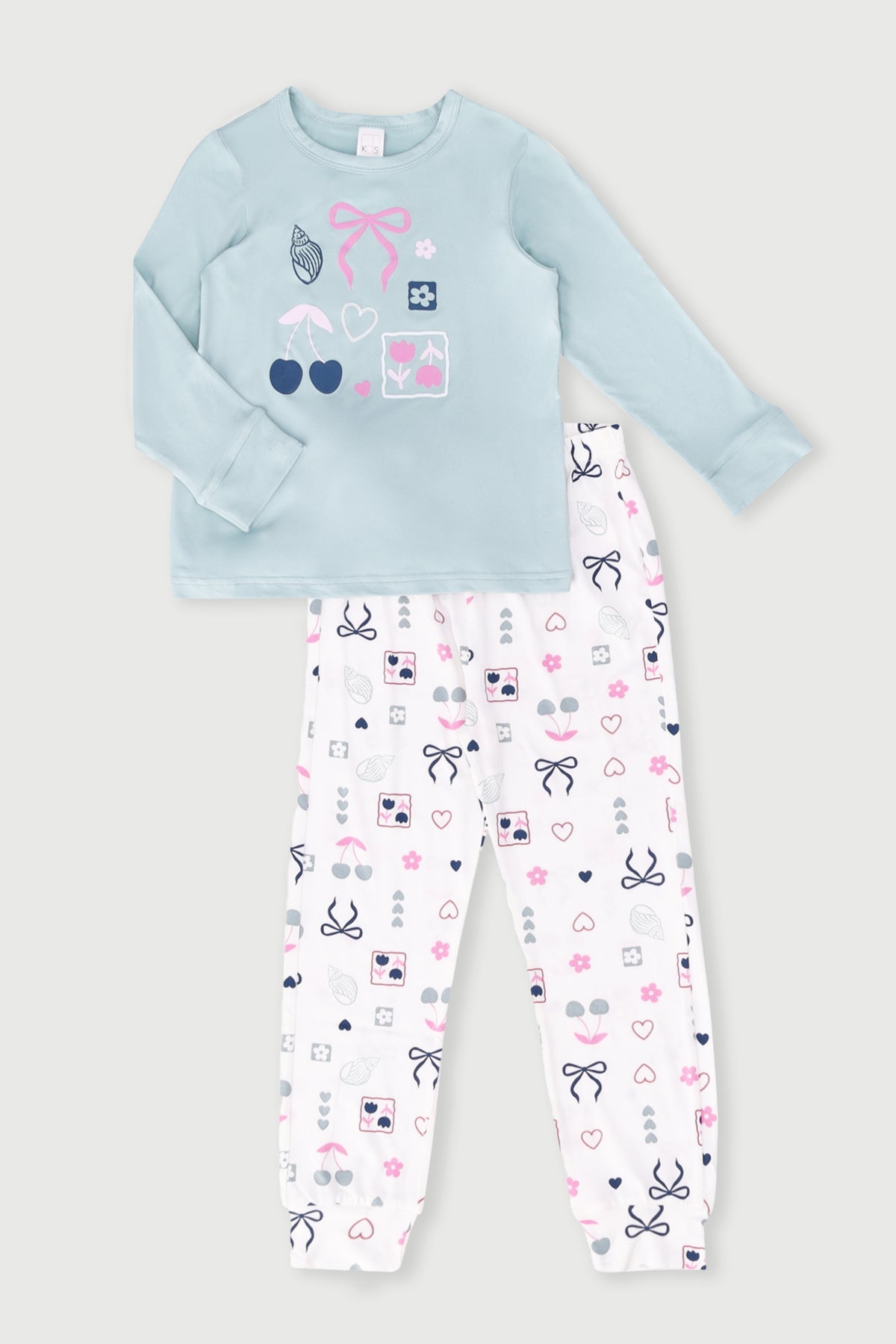 Pre-Girls Long Sleeve Bows & Shells Sleep Set - Sage