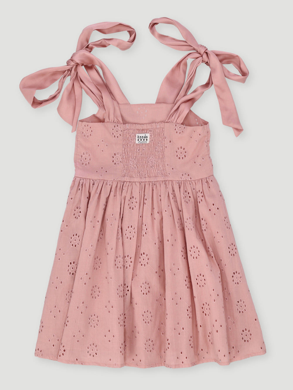 Keedo Girls Chiffon Bow Detail Anglaise Dress - Pink