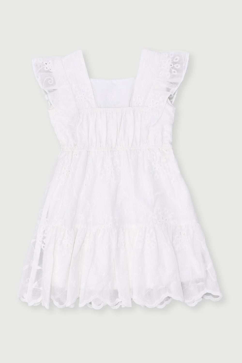 Pre-Girls Flutter Sleeve Anglaise Tiered Dress - White