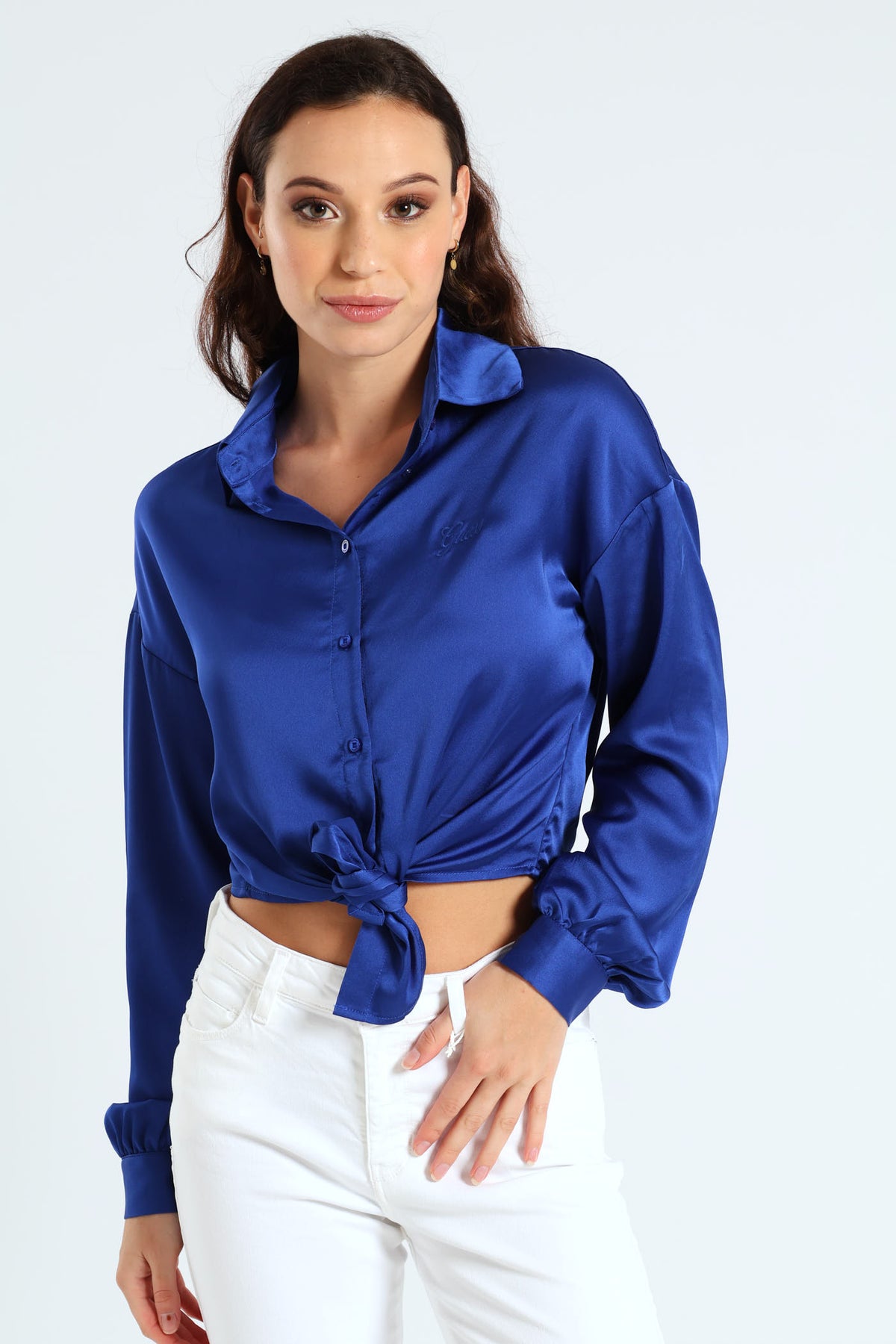 Long Sleeve Bowed Jun Shirt - Blue