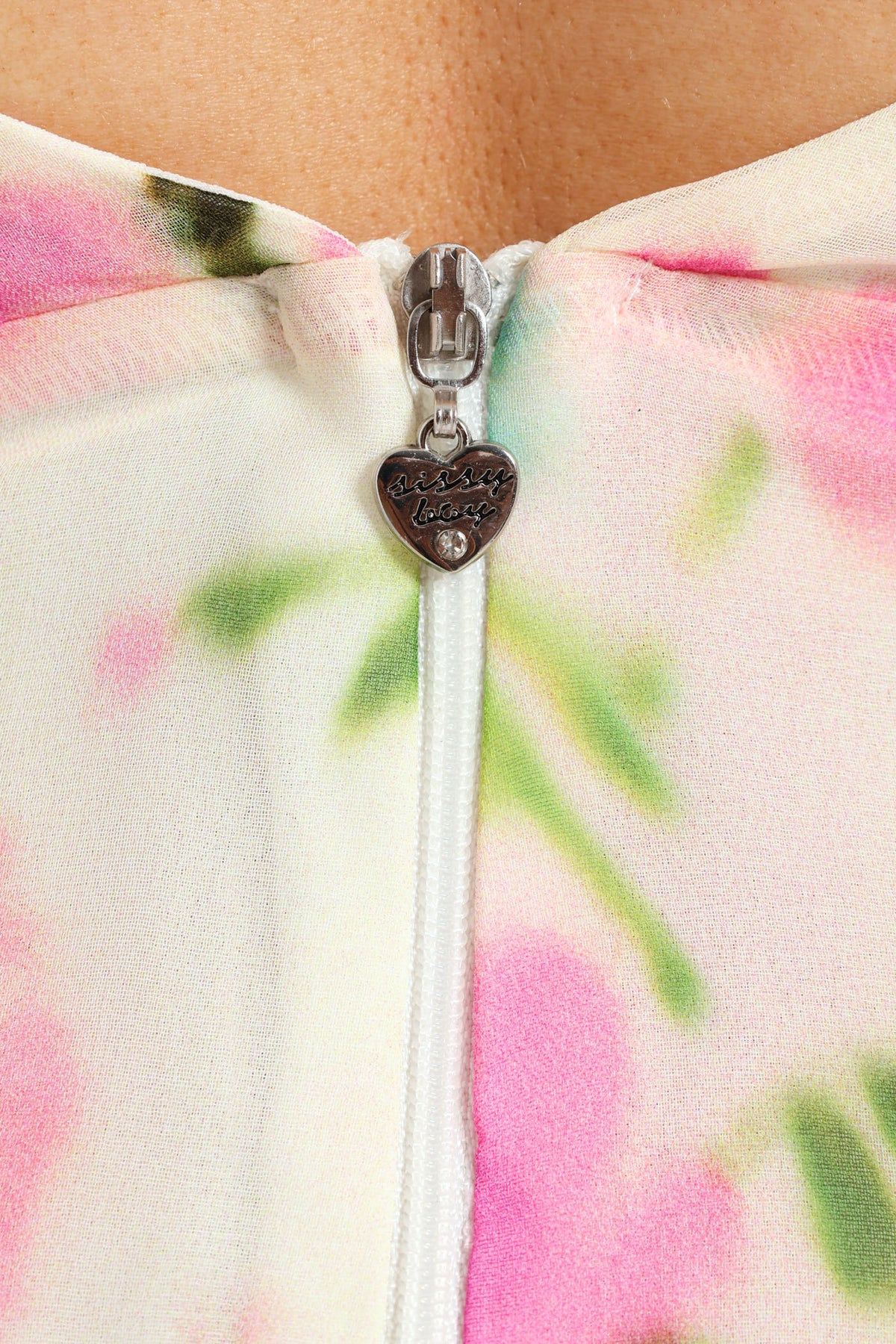 High Neck Drop Waist Blouson Mini Dress - Off White