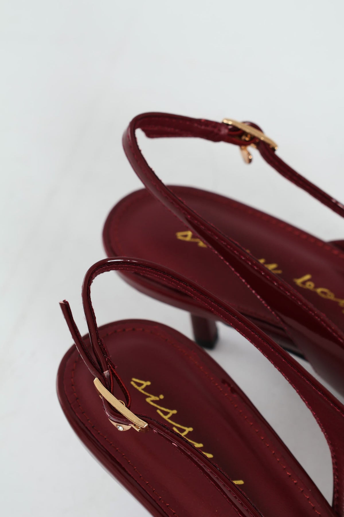 Multi Buckle Pointed Toe Slingback Heel - Red