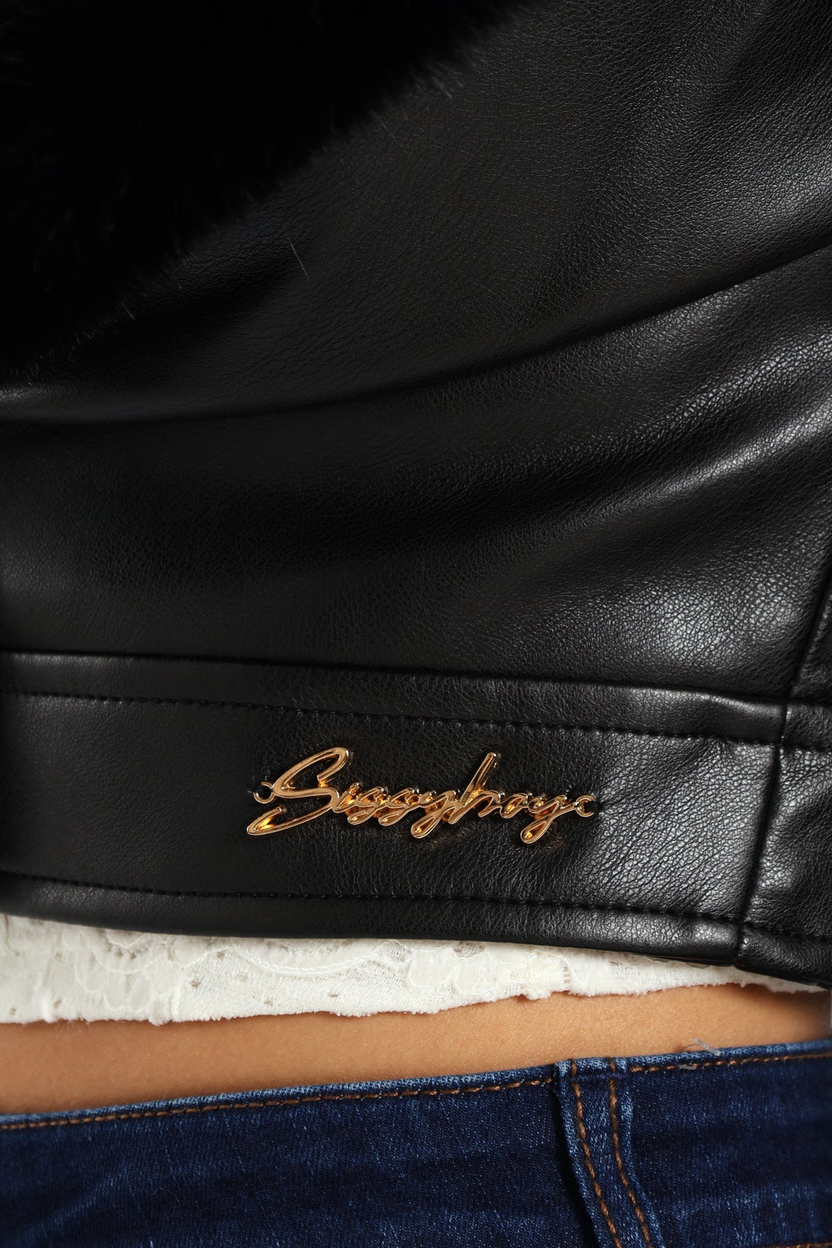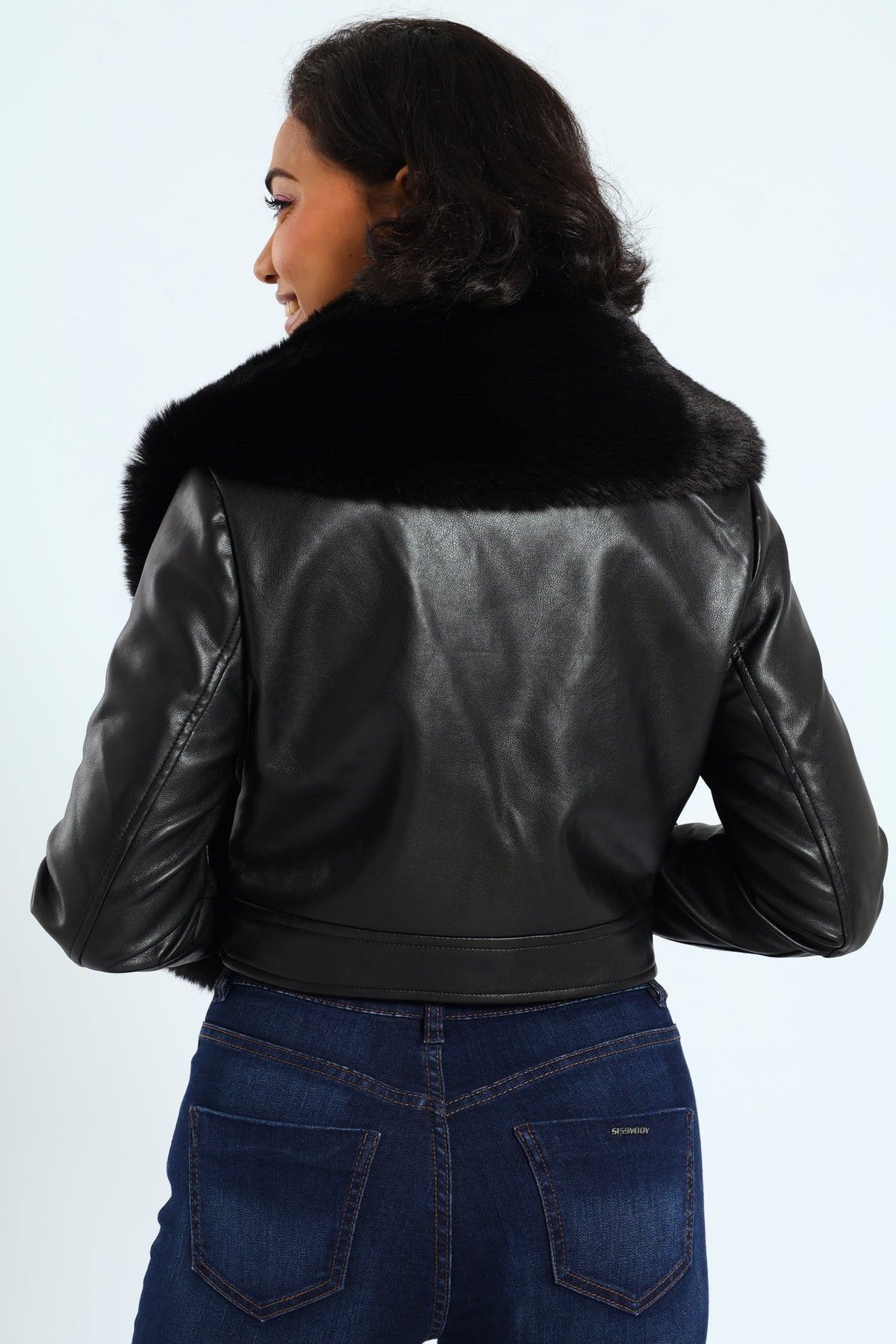 Vikki Faux Leather With Faux Fur Collar Jacket - Black