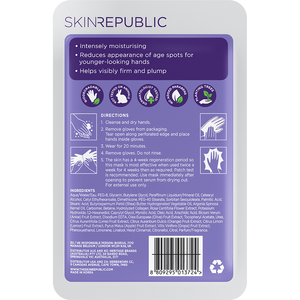Skin Republic is a multiple award-winning biodegradable mask and skin care brand. The range combines clinically proven formulations with nature’s restorative properties. Scientifically formulated and dermatologist tested, our range of products focuses on skin care for the face, under the eyes, neck and decolletage, hands and feet. Concentrated nutrient-rich ingredients nourish, rejuvenate and hydrate, helping you to maintain healthy looking glowing skin. Skin Republic range is women-owned, biodegradable, dermatologist tested and not tested on animals.